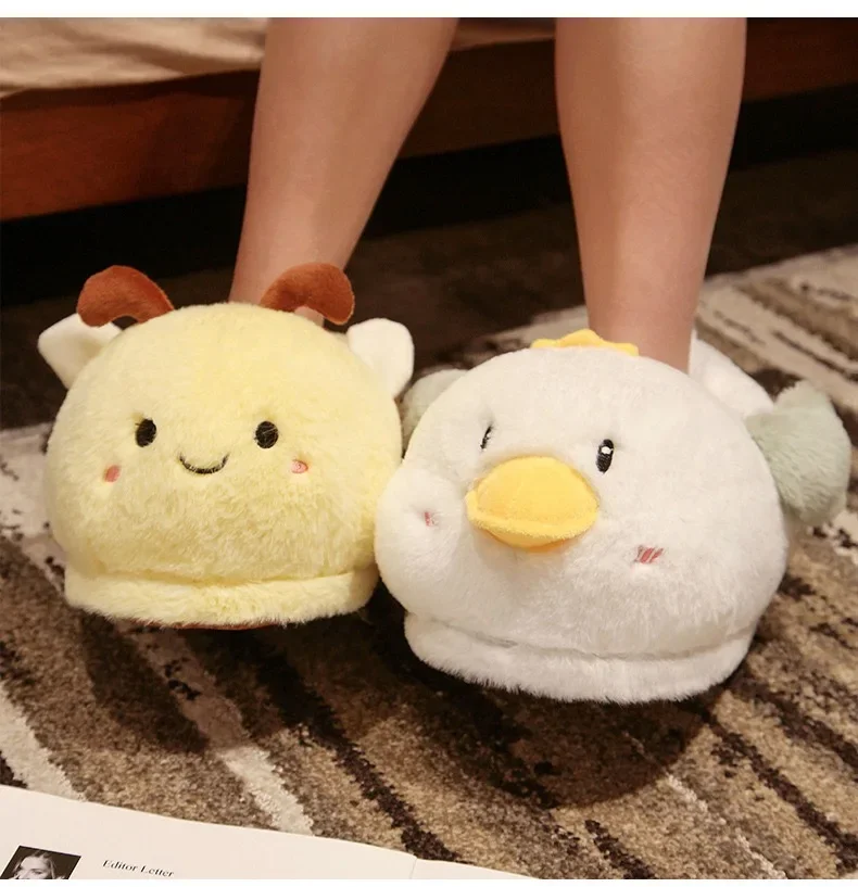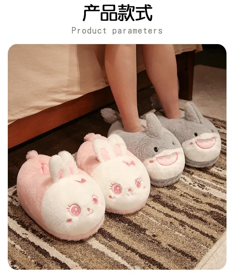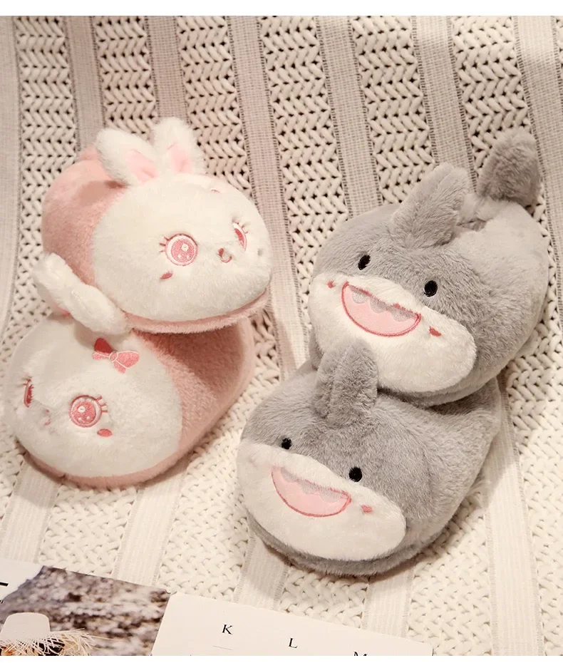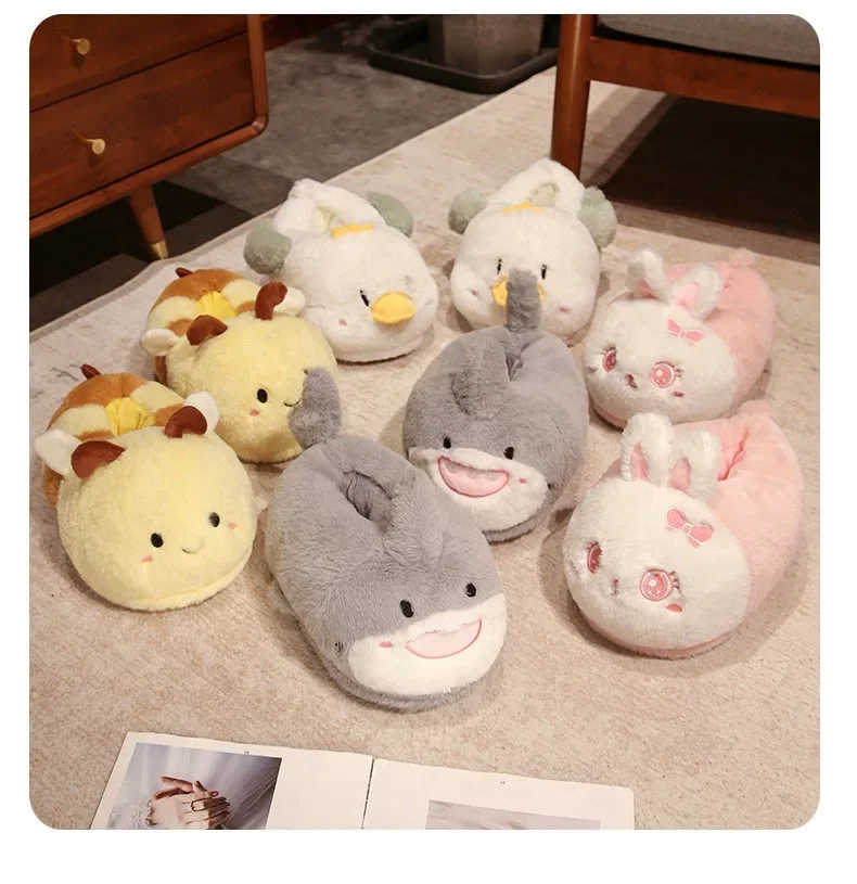 4 Style Anime Plush Slippers Indoor Warm Winter Fullcovered Cartoon Bunny Rabbit Shark Bee Duck Shoes Home Women Slipper