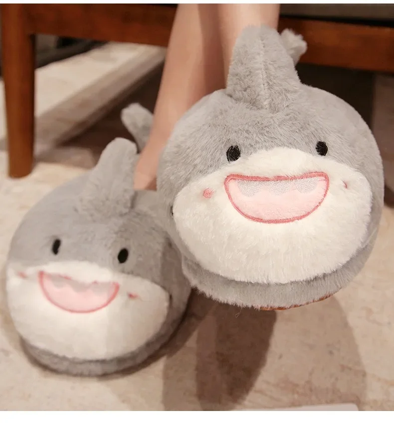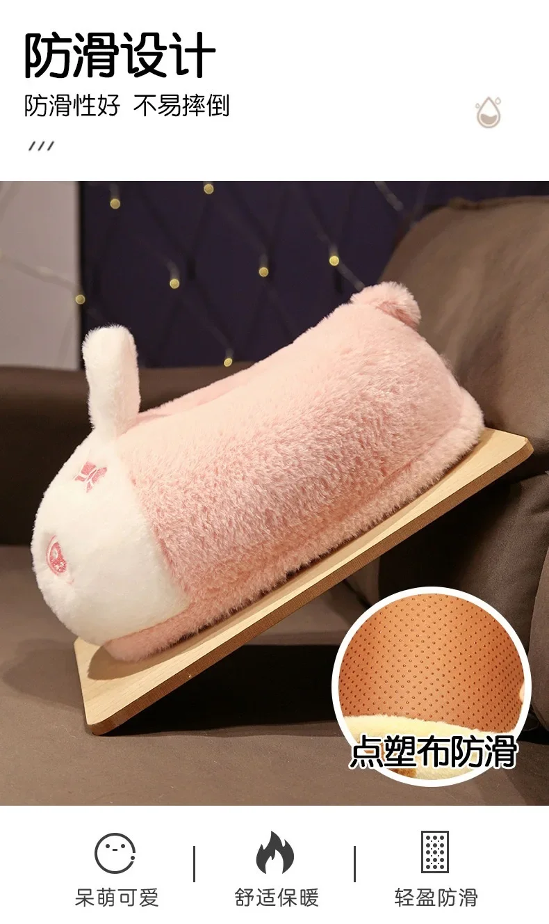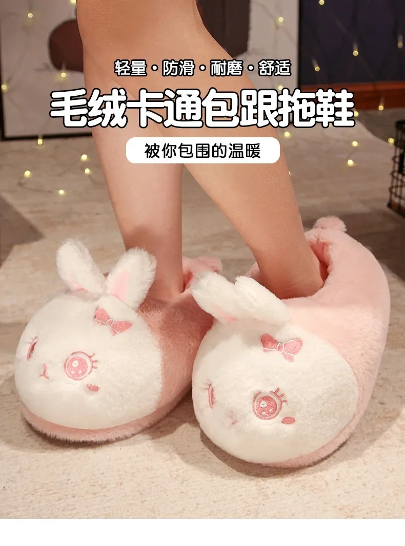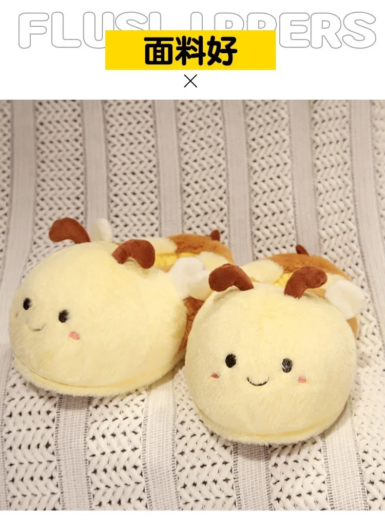 4 Style Anime Plush Slippers Indoor Warm Winter Fullcovered Cartoon Bunny Rabbit Shark Bee Duck Shoes Home Women Slipper