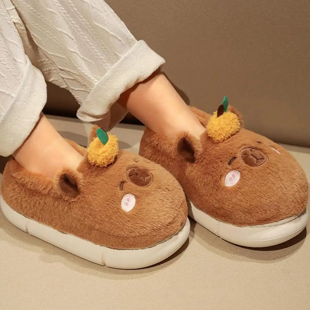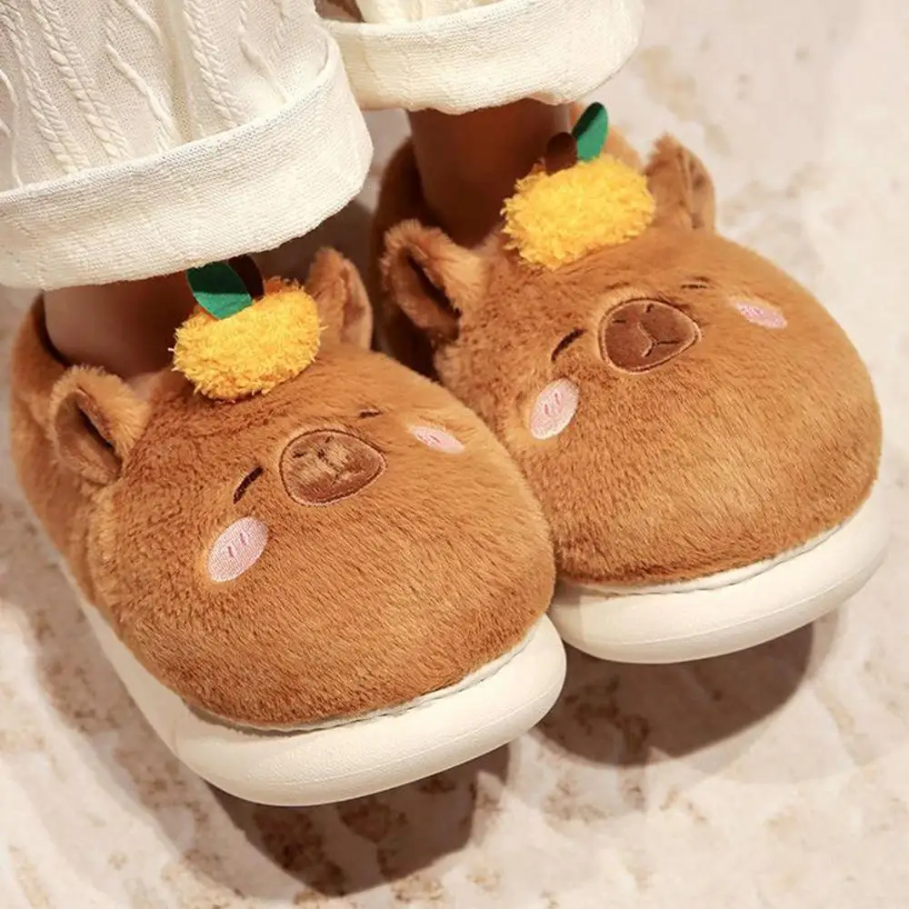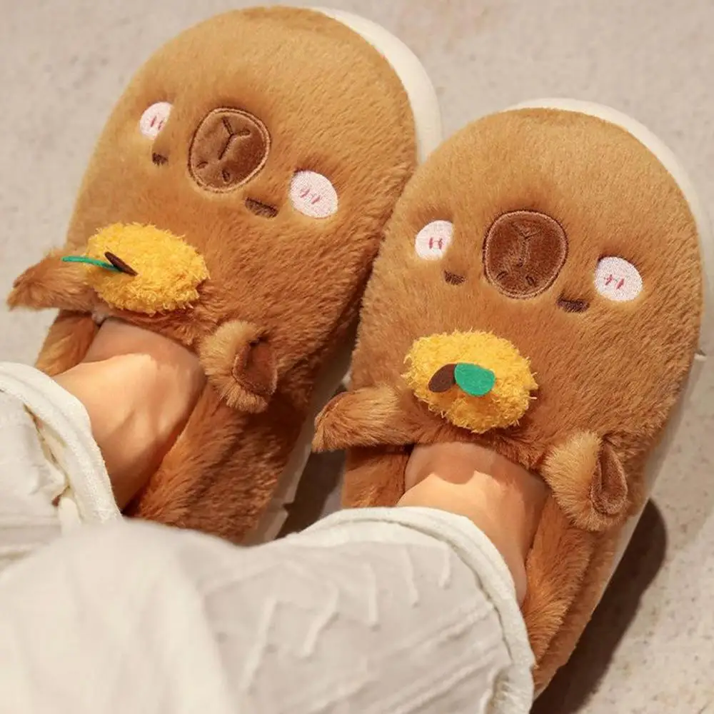 Capybara Slippers Cute Fuzzy Plush House Shoes Capybara Accessories Winter Warm Cotton Indoor Furry Animal Slippers