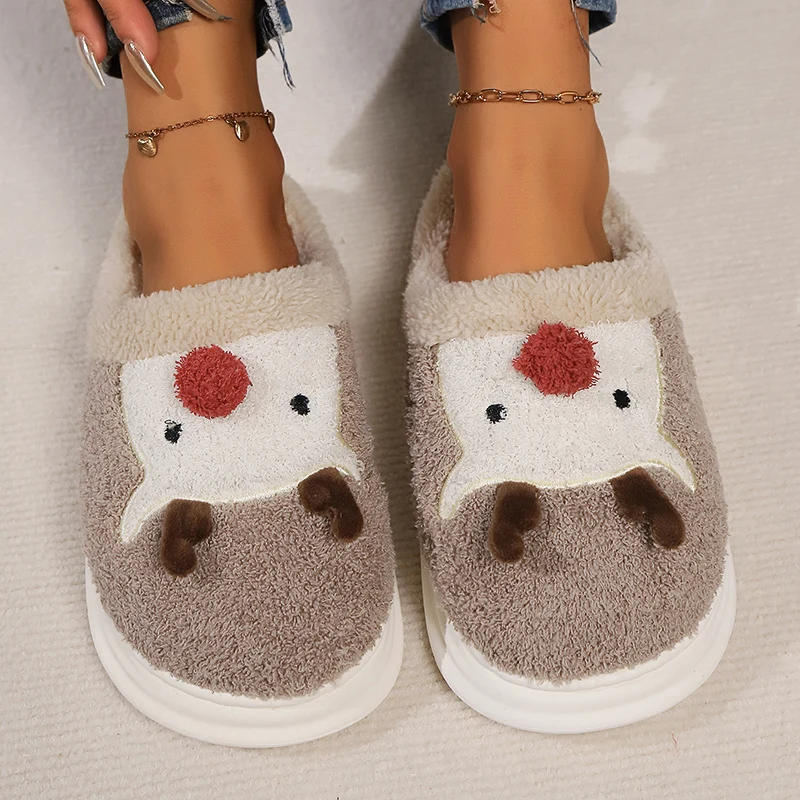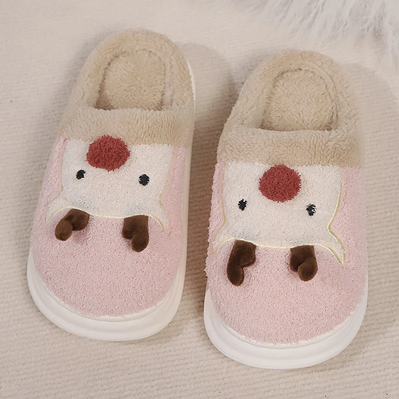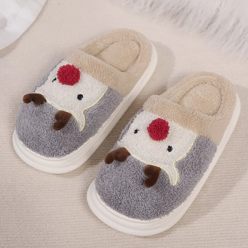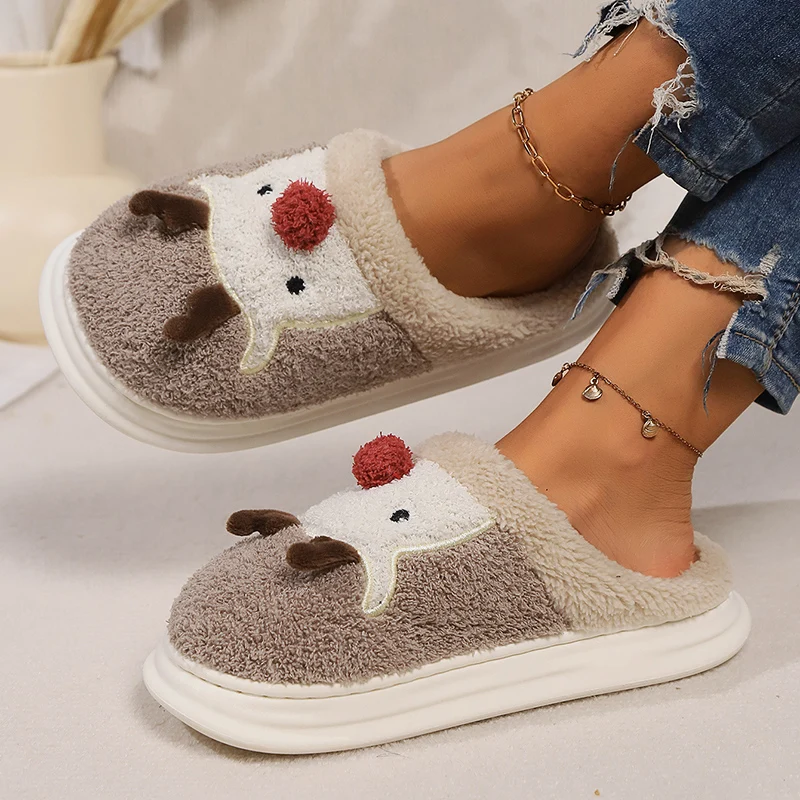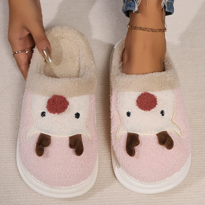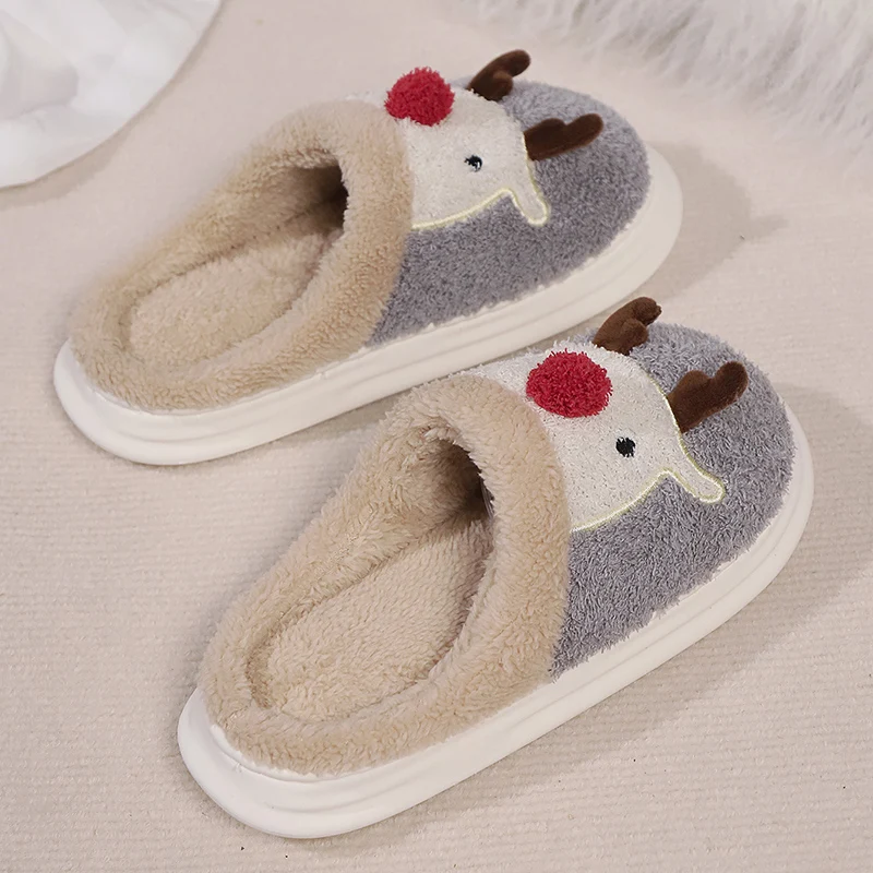 Christmas Elk Cotton Slippers for Women Men Winter Cute Cartoon Home Couple Floor Slides Woman Non Slip Indoor Plush Shoes 45