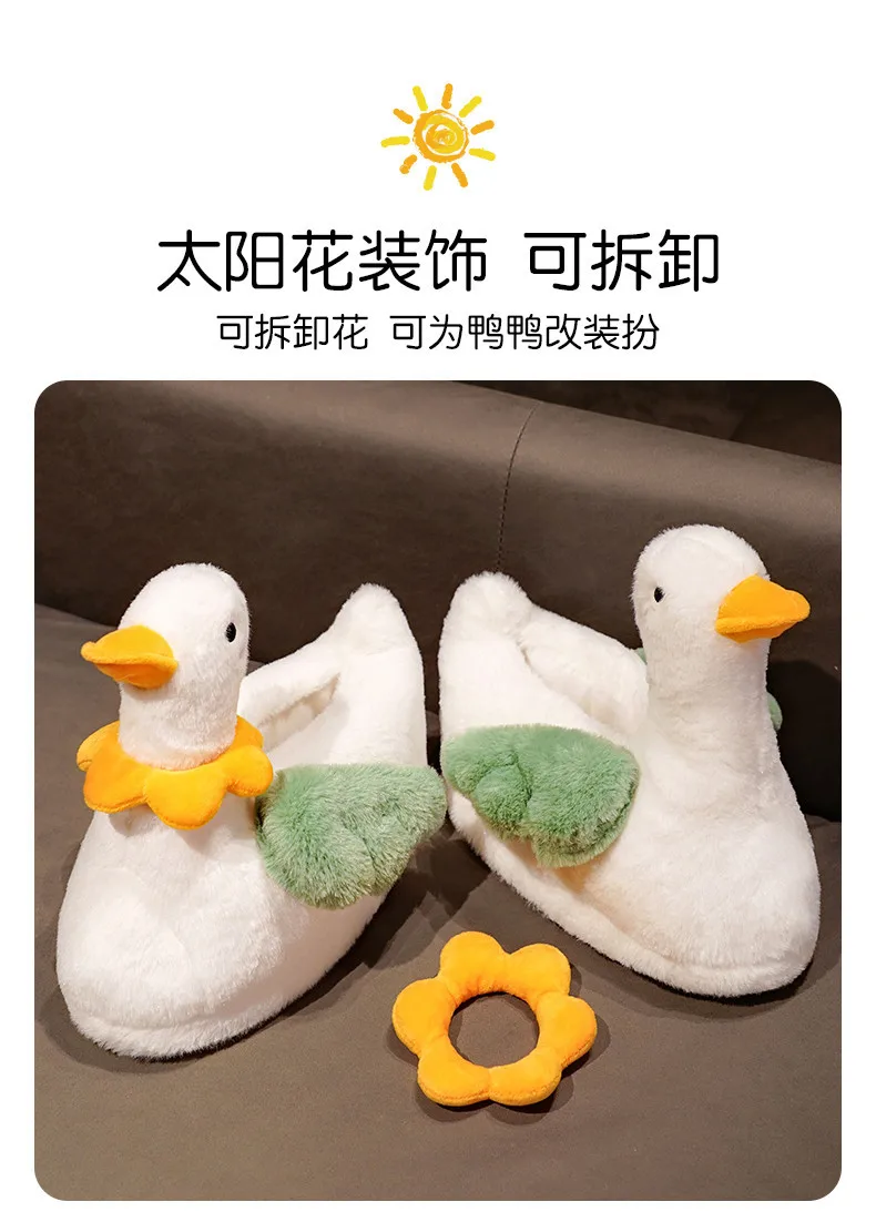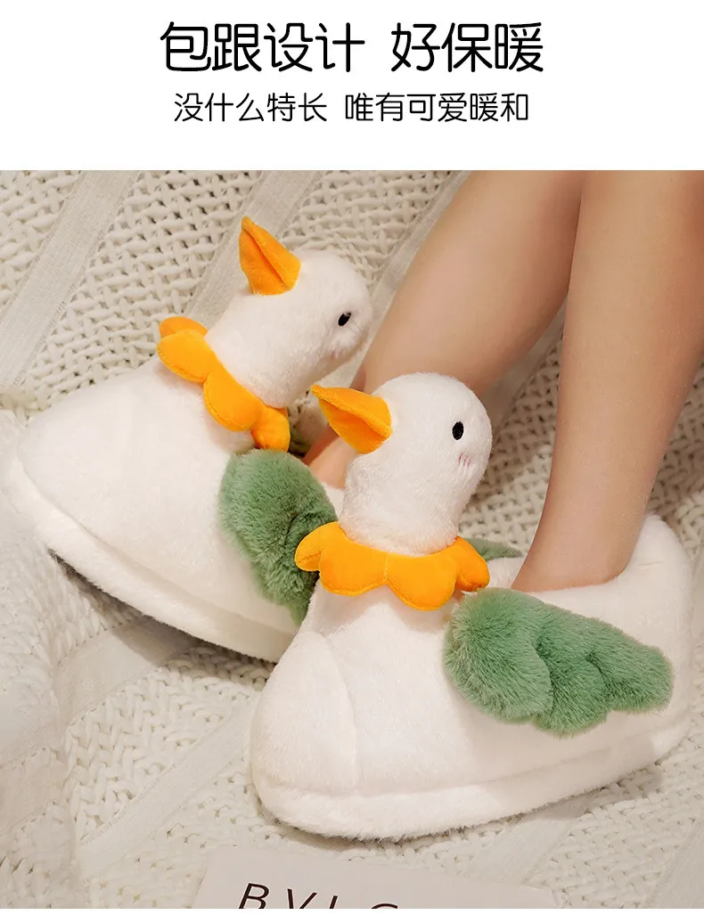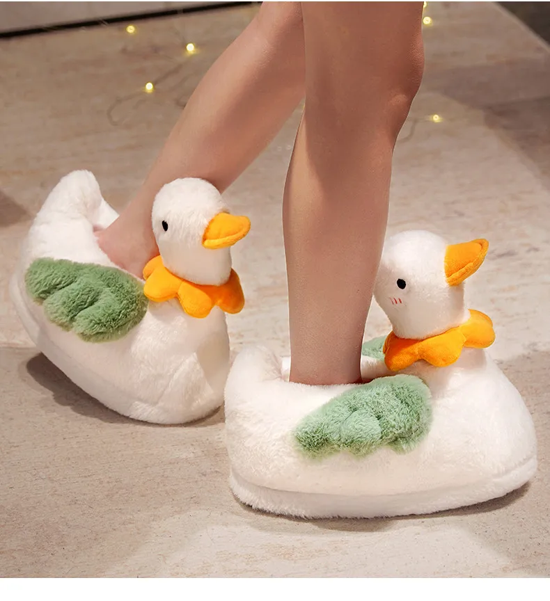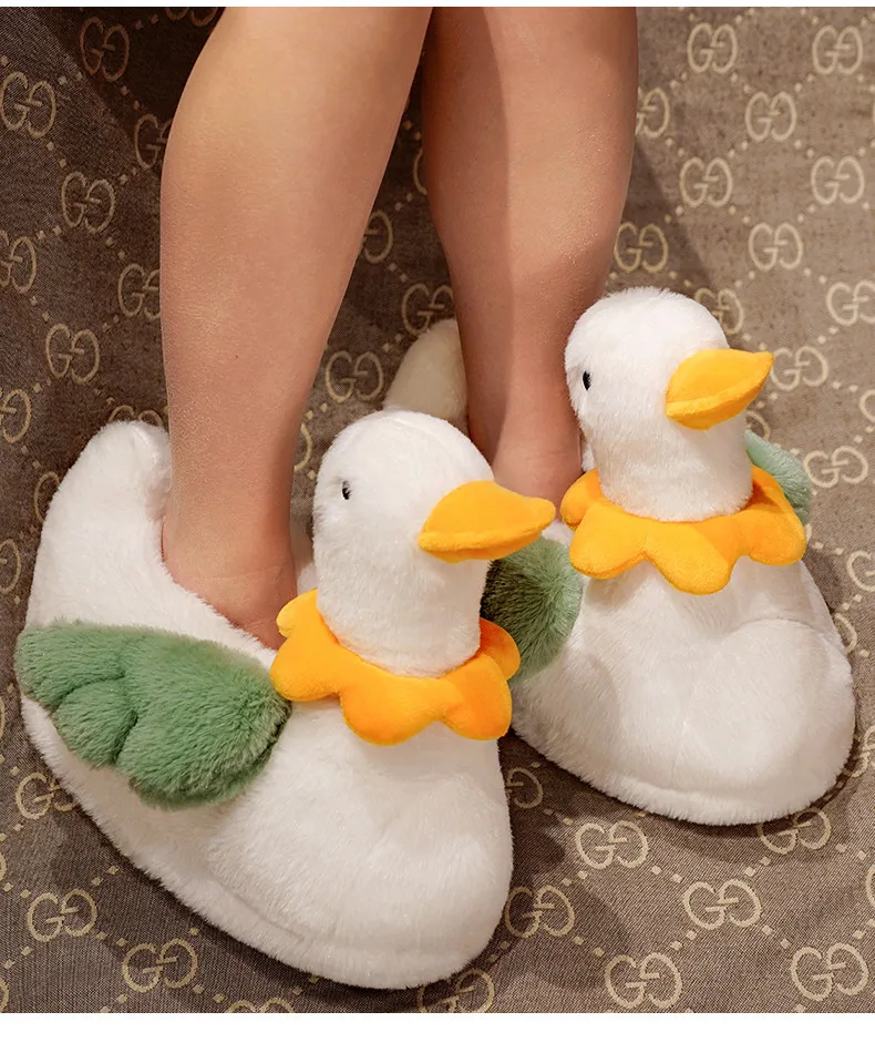 Cute Cartoon Duck Fluffy Slippers For Woman Winter Warm Shoes Soft Plush Funny Flower Girls Indoor Home Floor Slipper