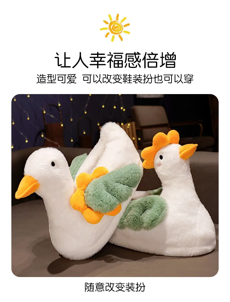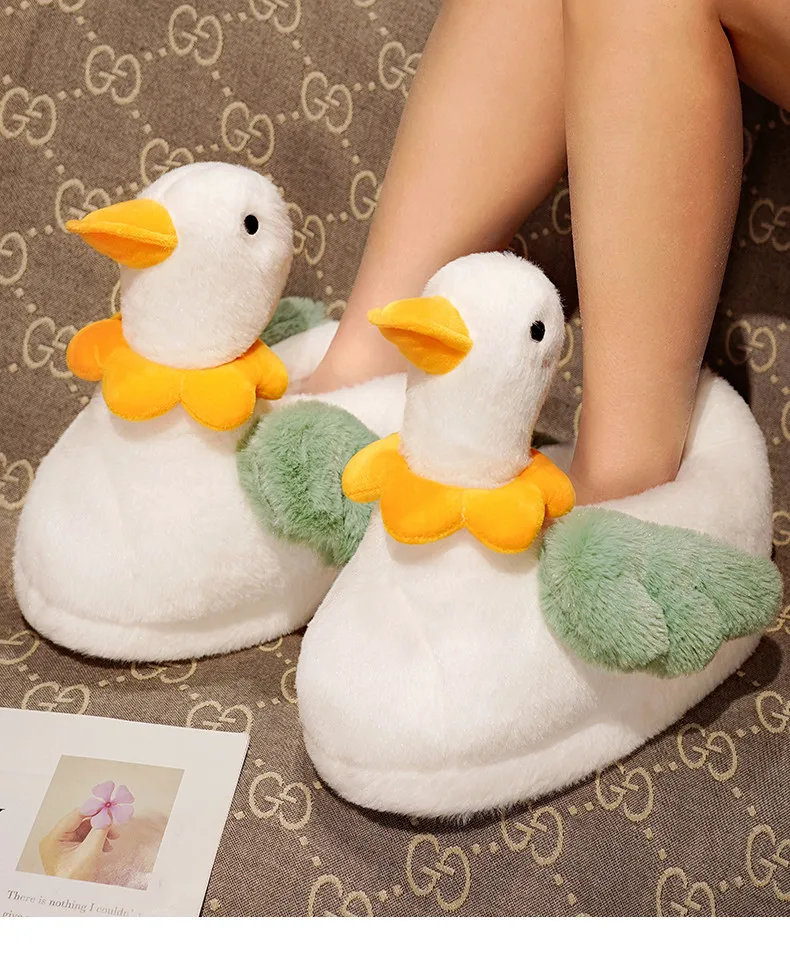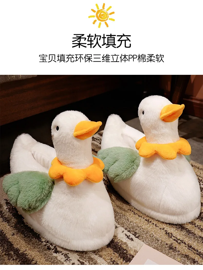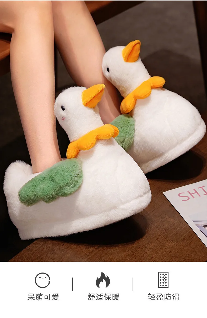 Cute Cartoon Duck Fluffy Slippers For Woman Winter Warm Shoes Soft Plush Funny Flower Girls Indoor Home Floor Slipper