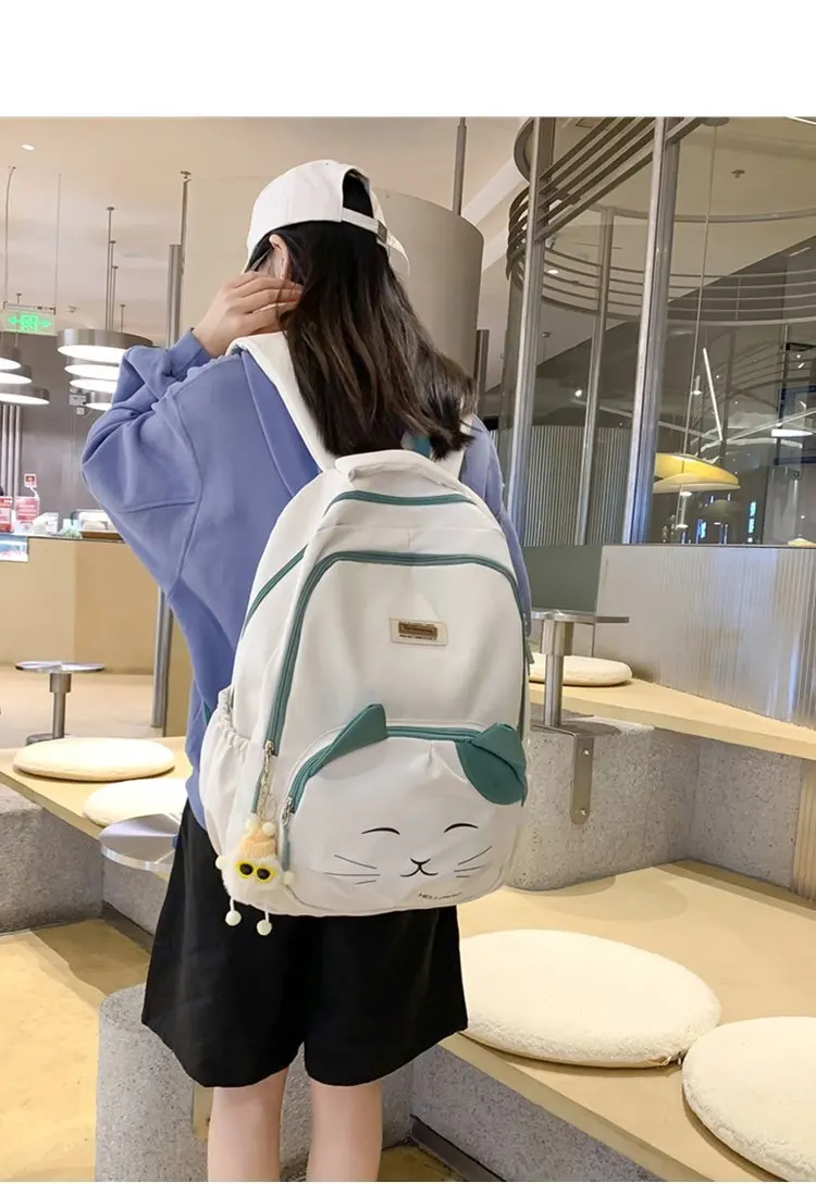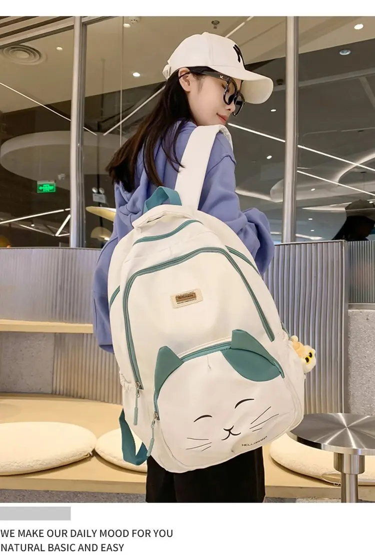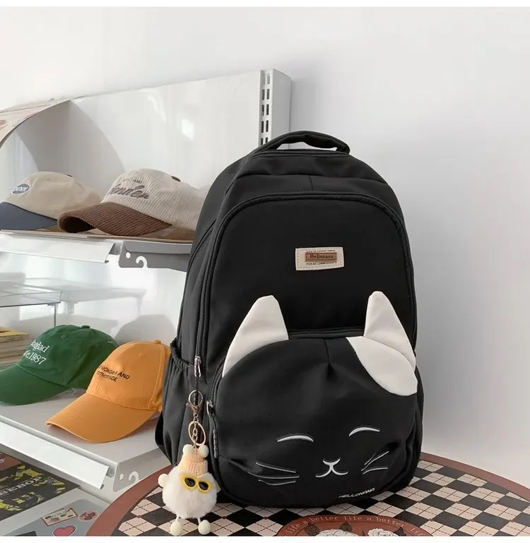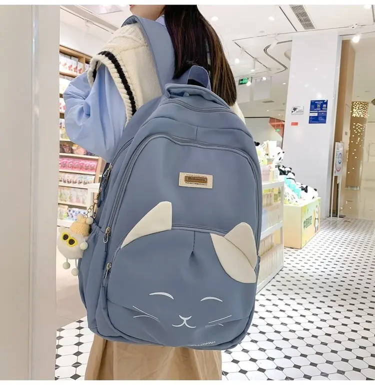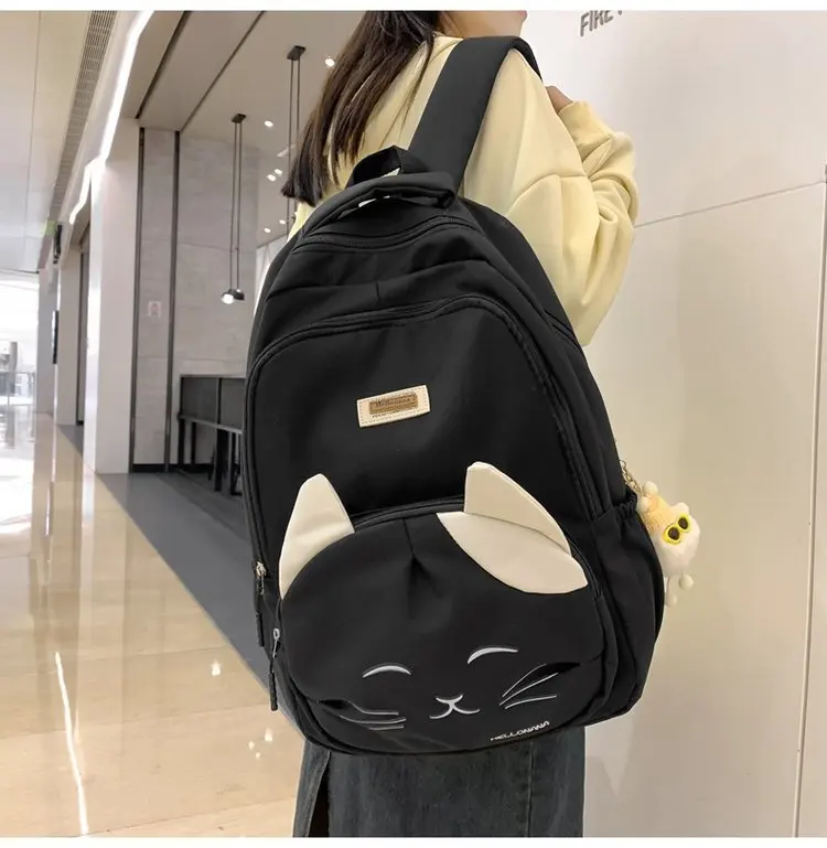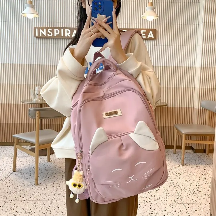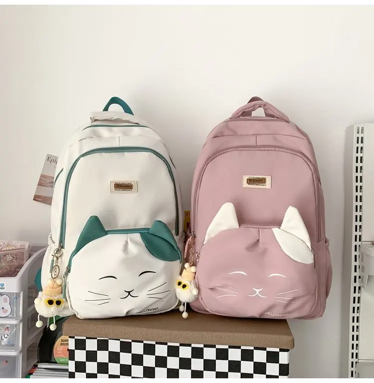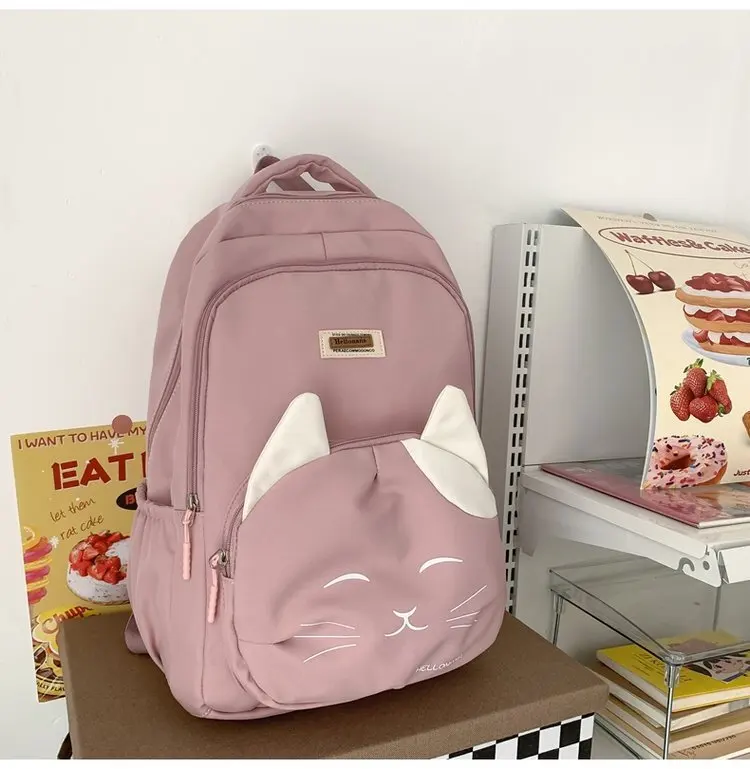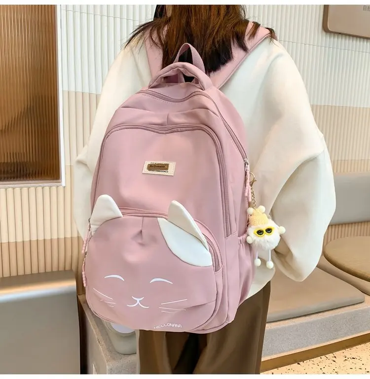 Cute Cat Young Girl School Backpack Female Large Capacity Kawaii Back Pack Mochila Pink Women Bagpack Nylon Cartoon Schoolbag