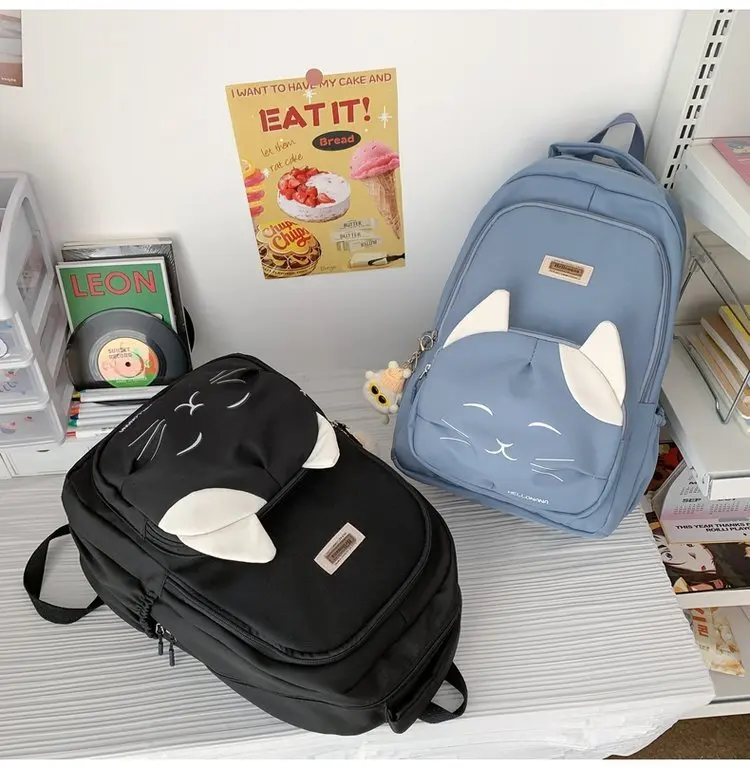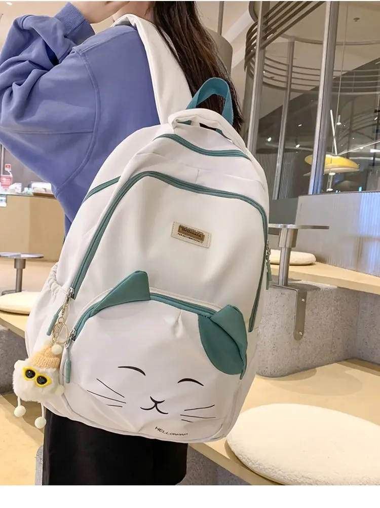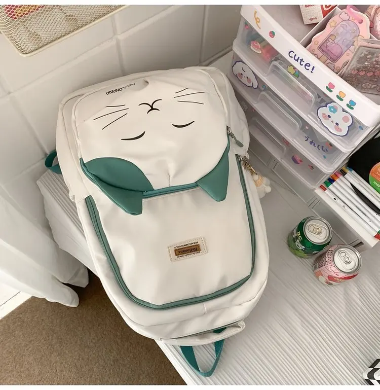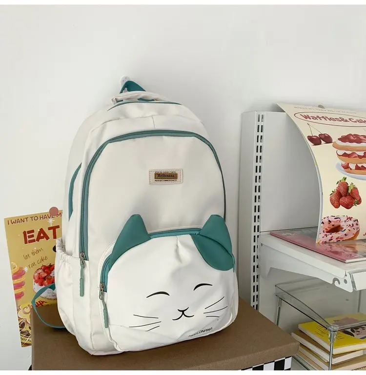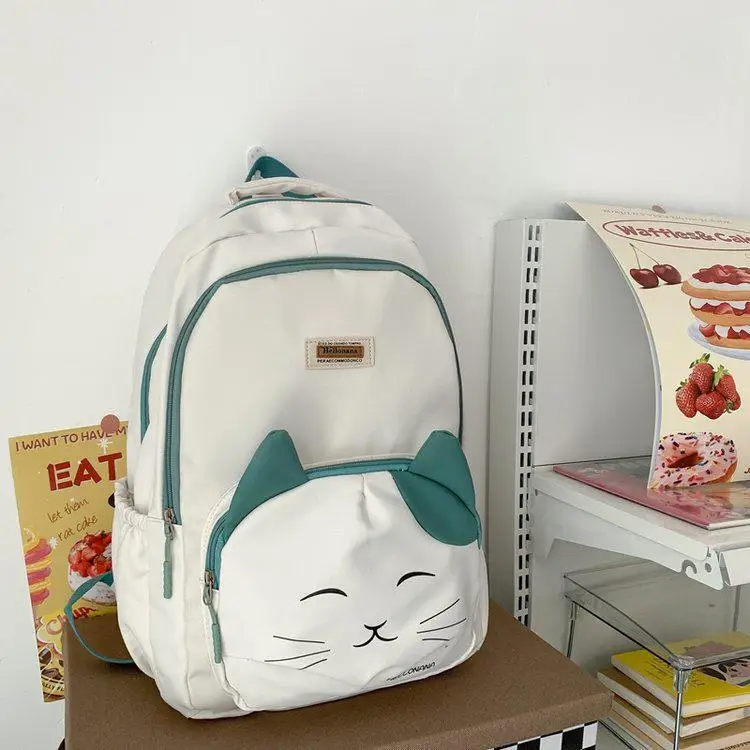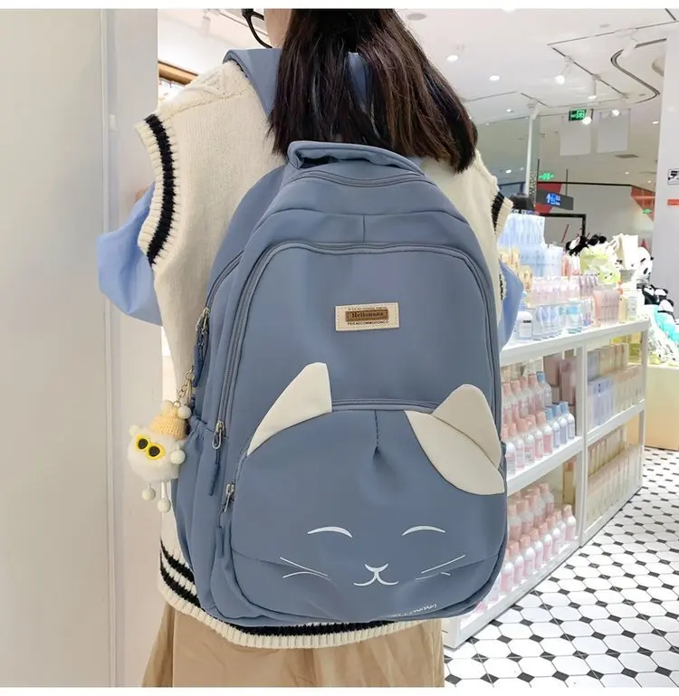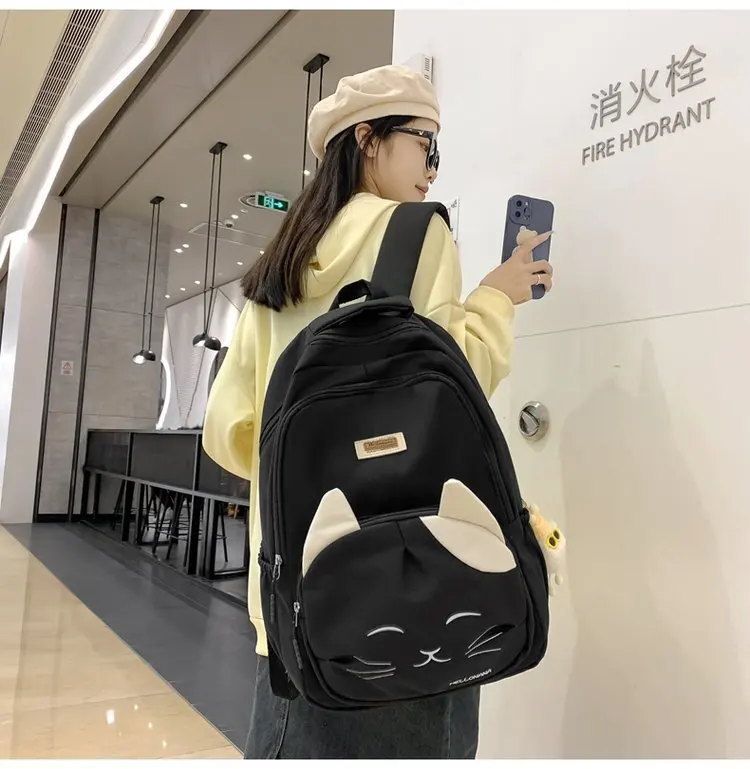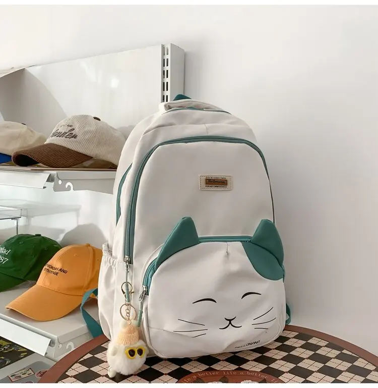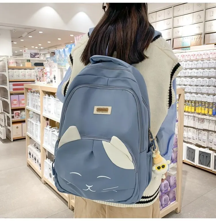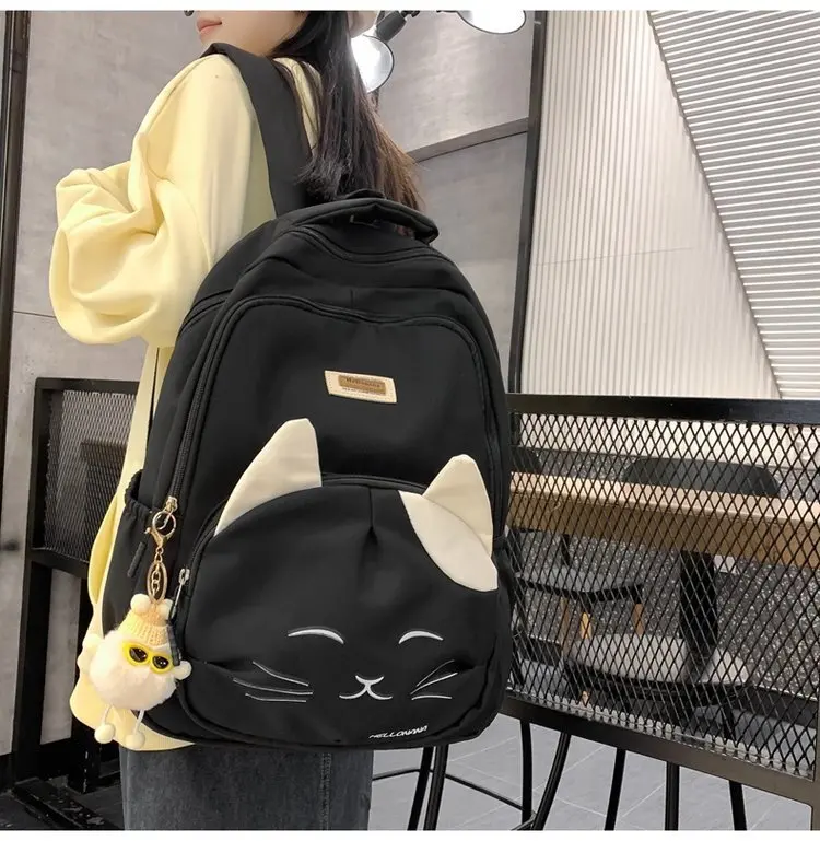 Cute Cat Young Girl School Backpack Female Large Capacity Kawaii Back Pack Mochila Pink Women Bagpack Nylon Cartoon Schoolbag
