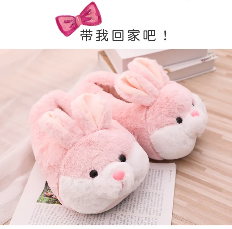 Cute Rabbit Shoes Women Winter Slippers Warm Plush Soft Sole Girls Indoor Home Floor Slipper Pink Color Ladies Cartoon Footwear