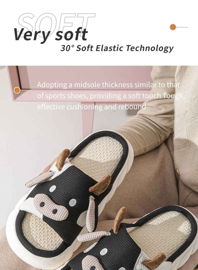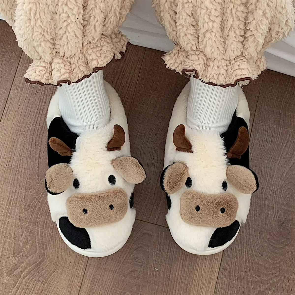 Evshine Women's Cute Milk Cow Furry Slippers Winter Warm Plush Lined Non-slip House Slipper Female Fur Fluffy Casual Flat Slides