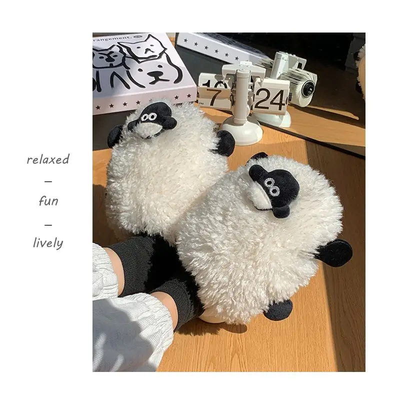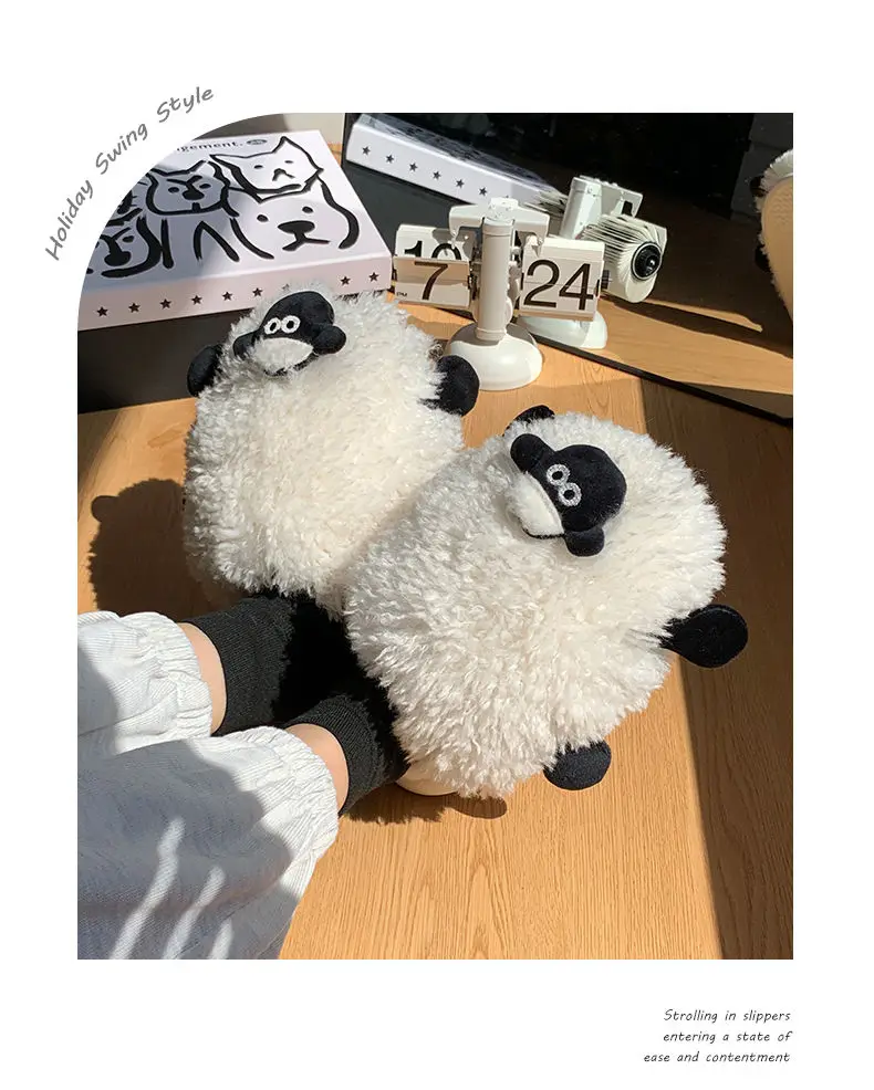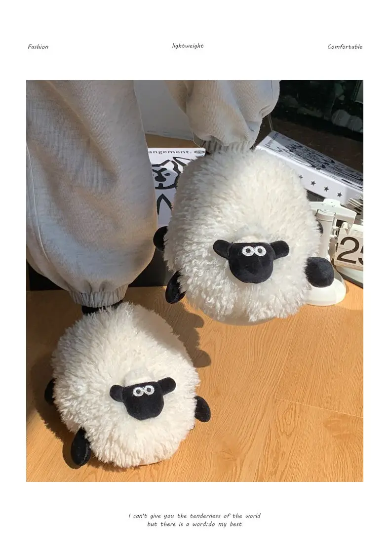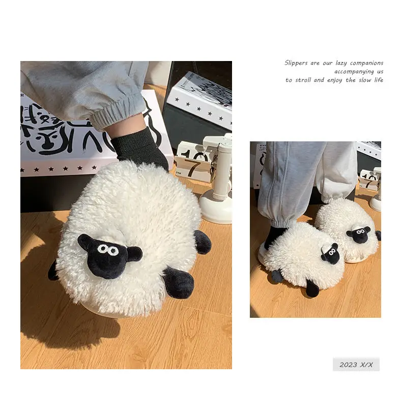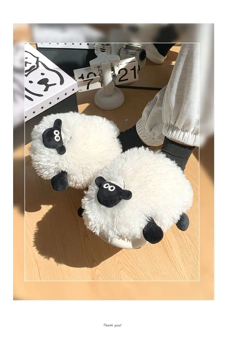 Fuzzy sheep slippers for women free shipping winter furry slides cozy cute home shoes shaggy adult lamb slippers flip flops