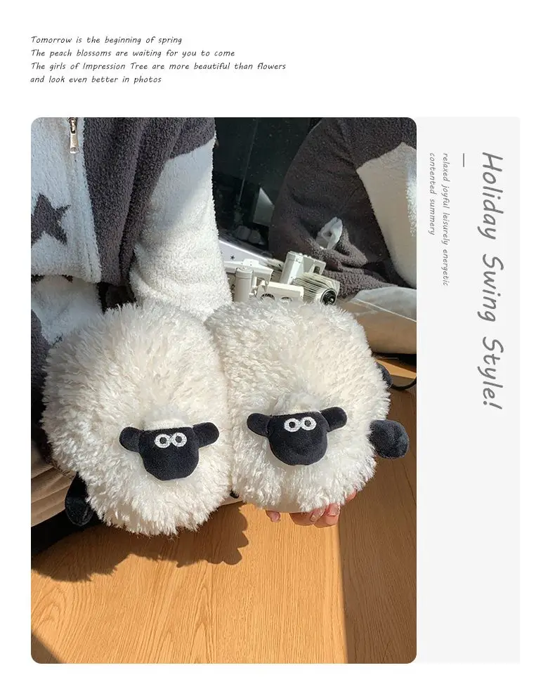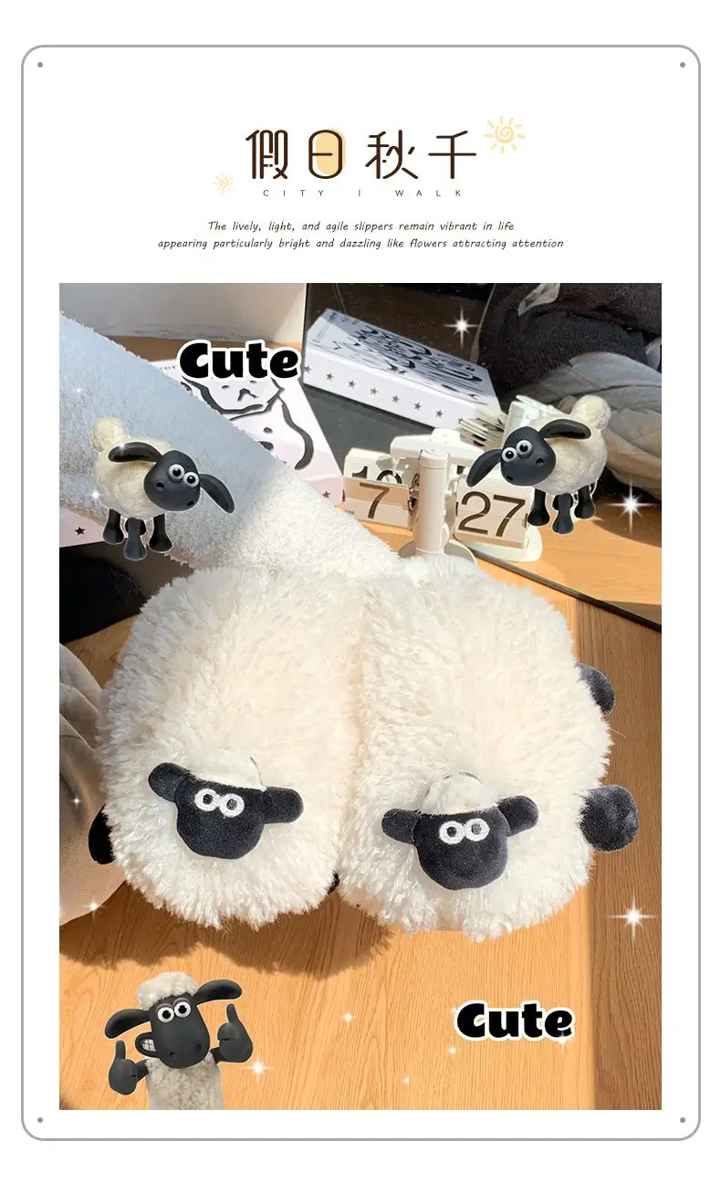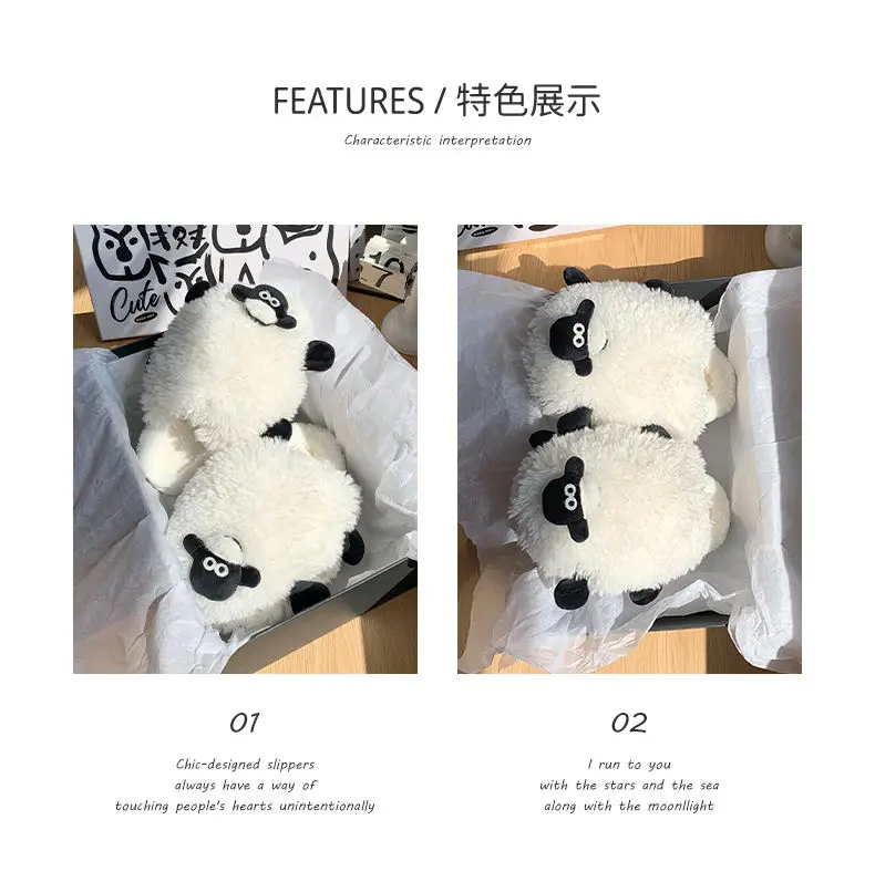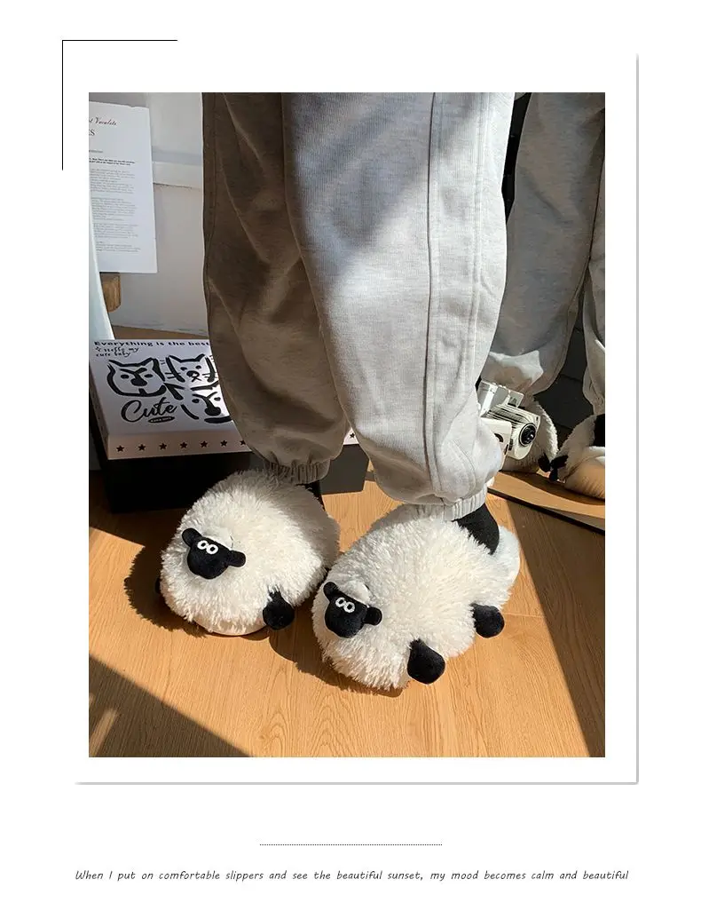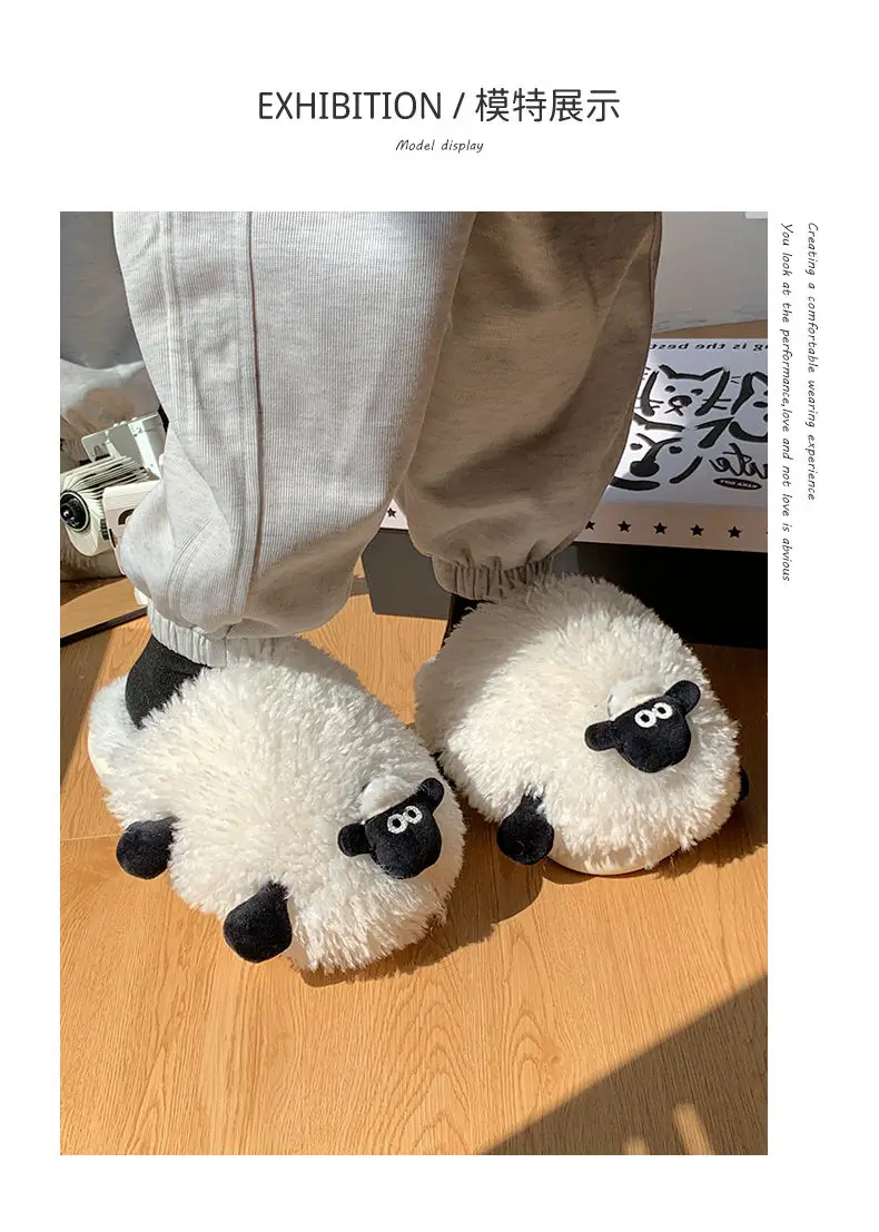 Fuzzy sheep slippers for women free shipping winter furry slides cozy cute home shoes shaggy adult lamb slippers flip flops