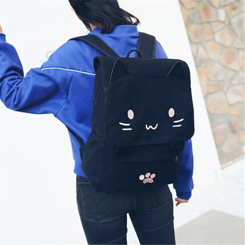 Japanese Stupid Cute 3D Cat Large Capacity Book Bag, Girl Cartoon Backpack, Women's Backpacks