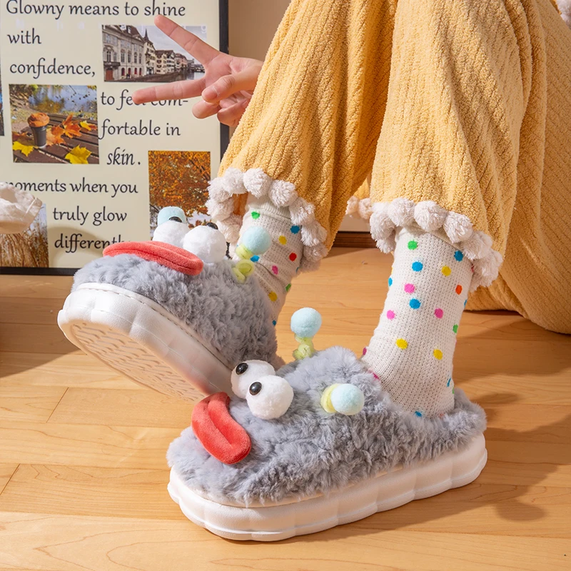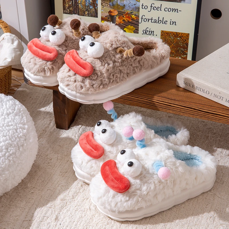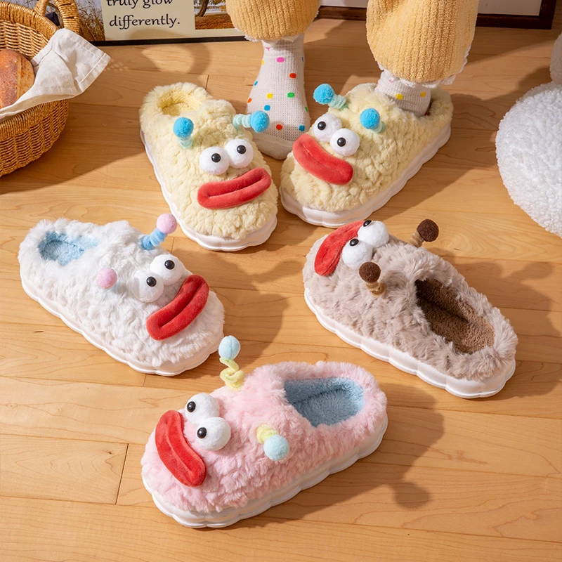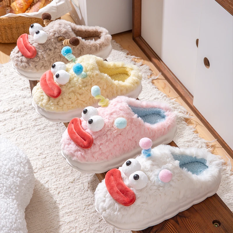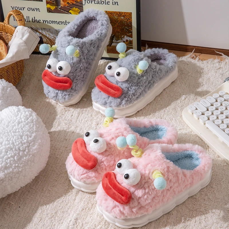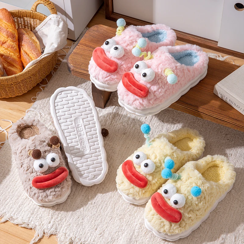 Men Anti-slip Cute Winter Cotton Slippers Women Home Indoor Cozy House Shoes Unisex Couple Soft Warm Flat Thick Sole Footwear