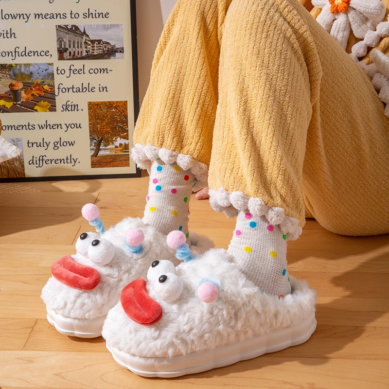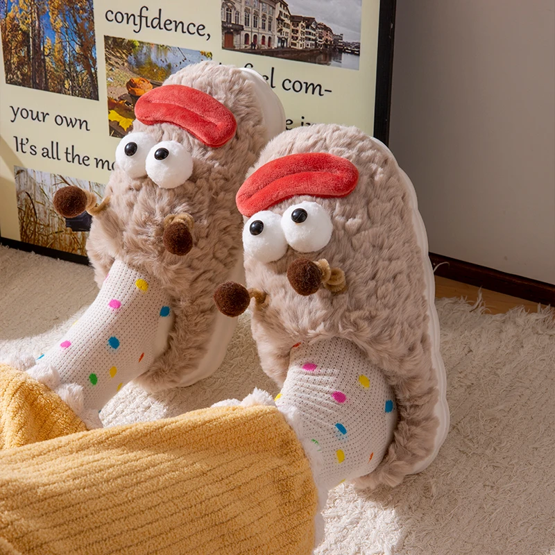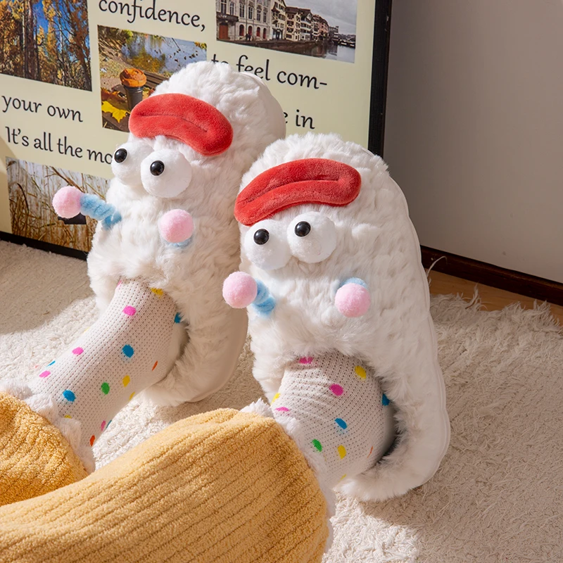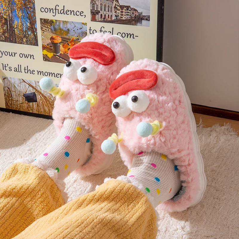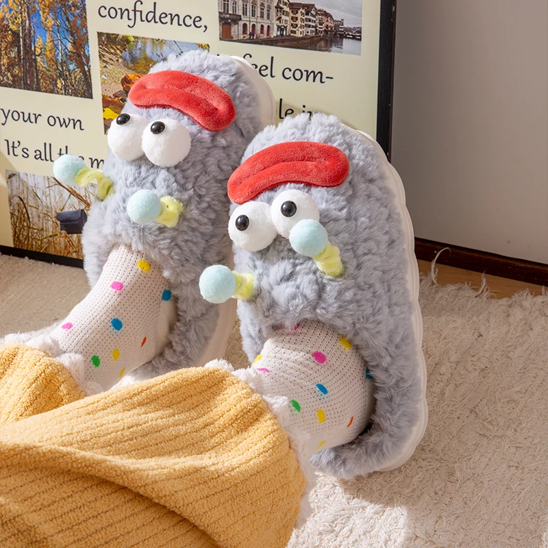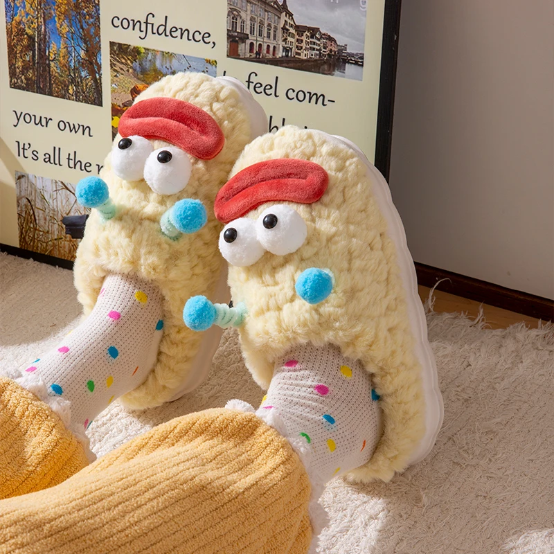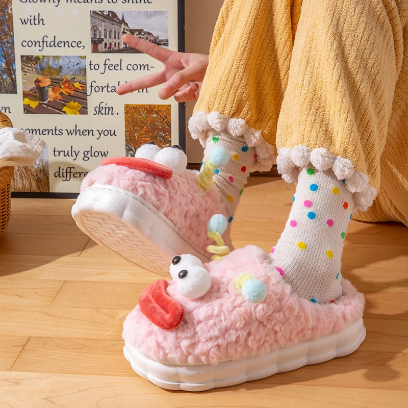 Men Anti-slip Cute Winter Cotton Slippers Women Home Indoor Cozy House Shoes Unisex Couple Soft Warm Flat Thick Sole Footwear