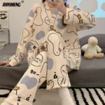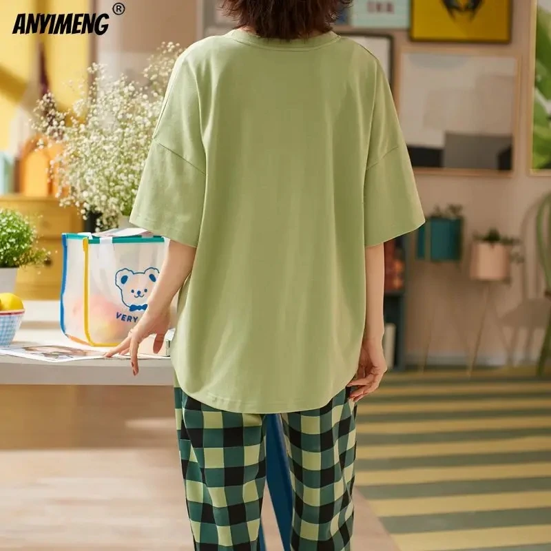 New Sleepwear Cartoon Cotton Pajamas for Women Long Pants Short Sleeved Summer Spring Loungewear Fashion Home Clothing Homewear