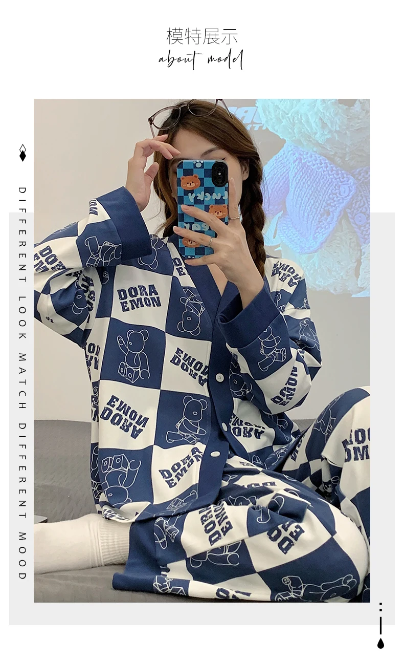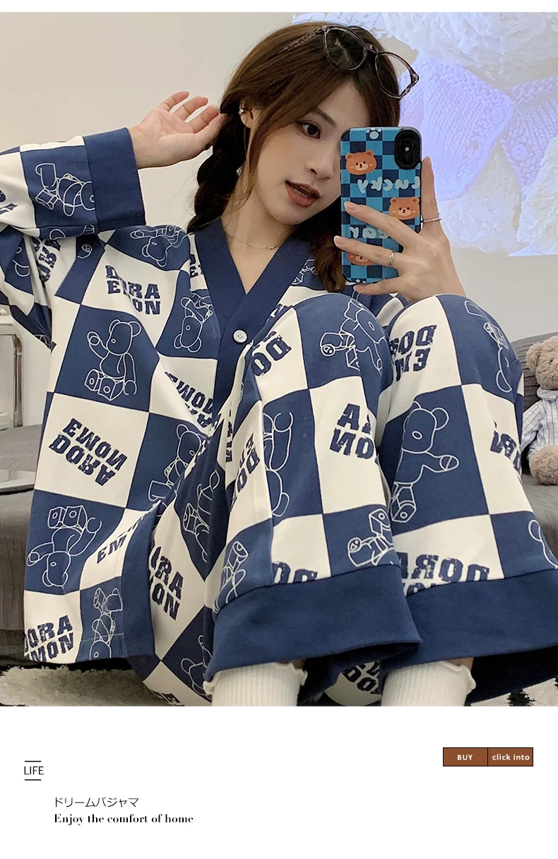 SUKAE Women Autumn Winter New Pajamas Sets Faux Cotton Sleepwear Casual Kimono Pijamas Sets Leisure Lapel Loungewear Homesuits