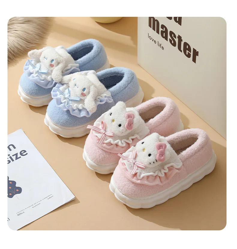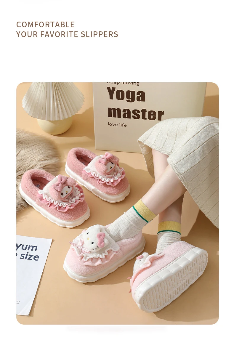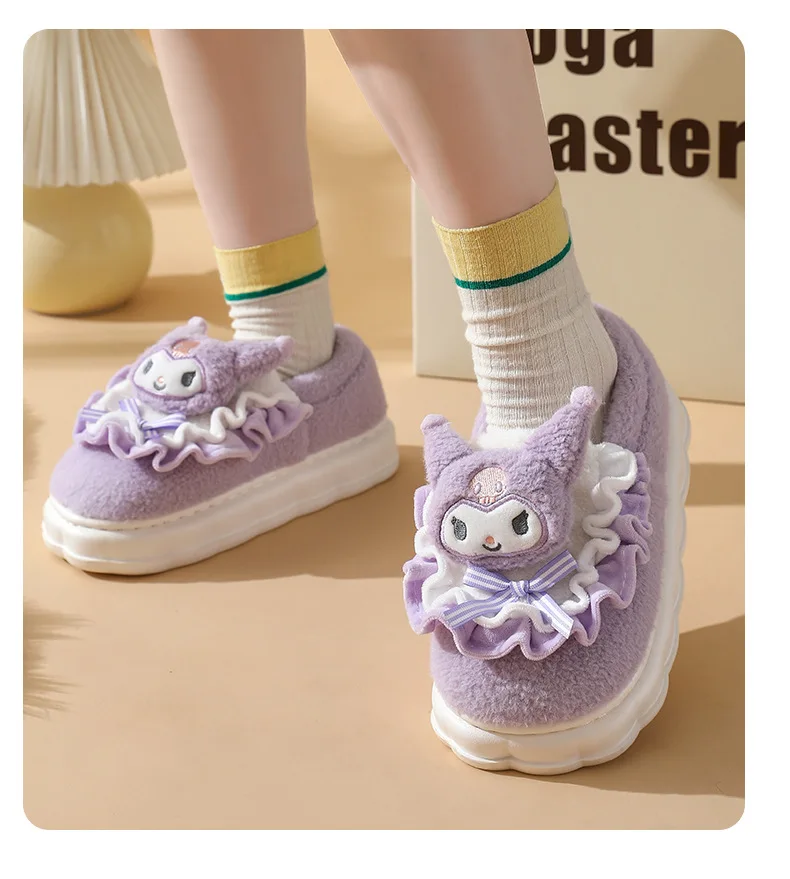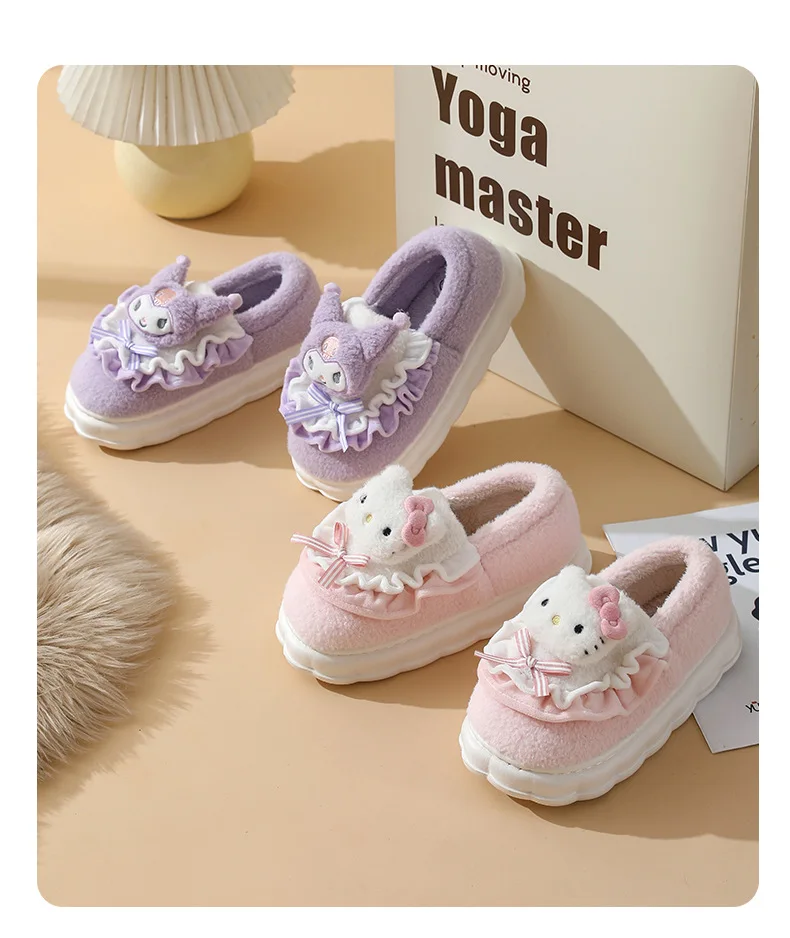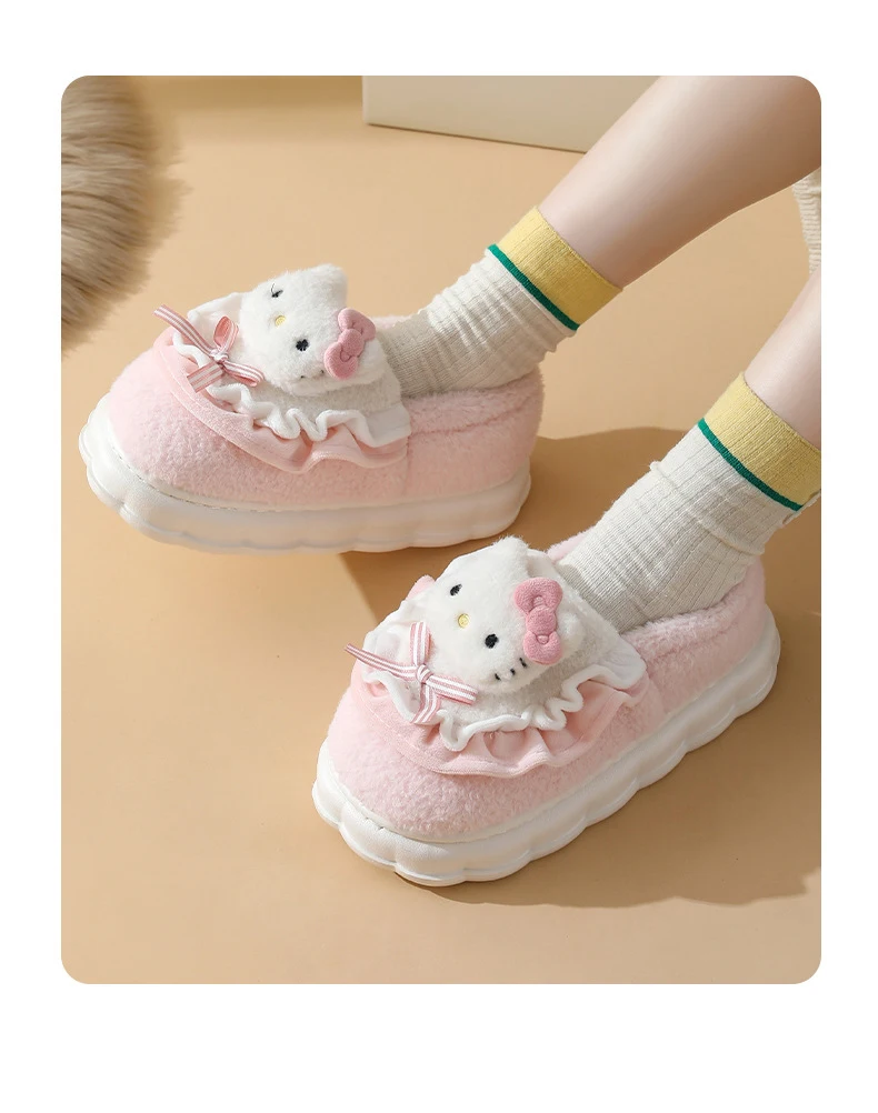 Sweet Cotton Shoes Women Winter Home Thick Sole Cartoon Non-slip Slippers Indoor Comfortable Kuromi Hello Kitty