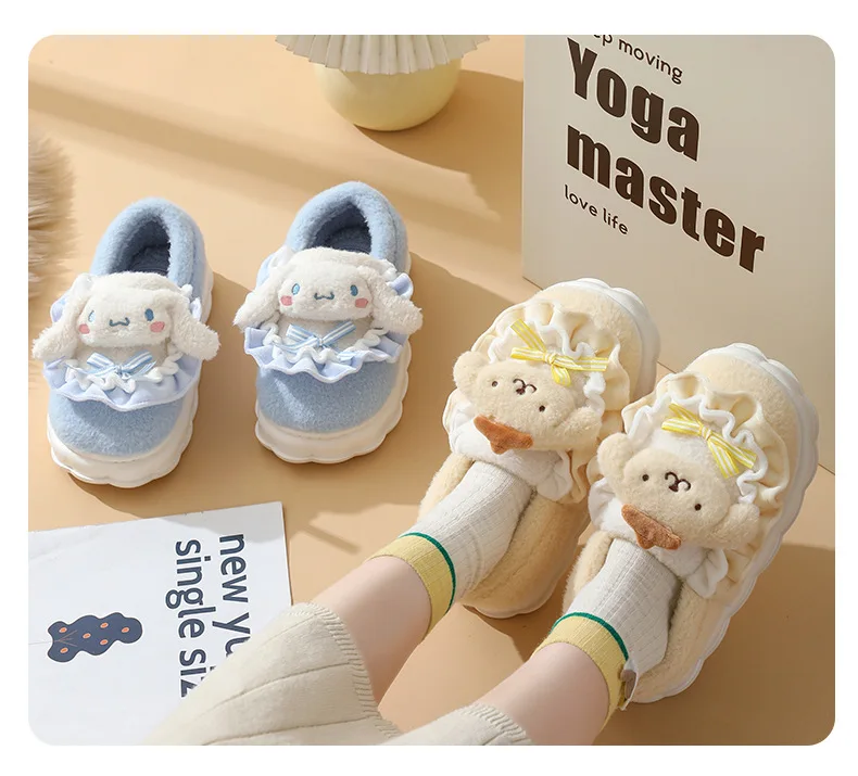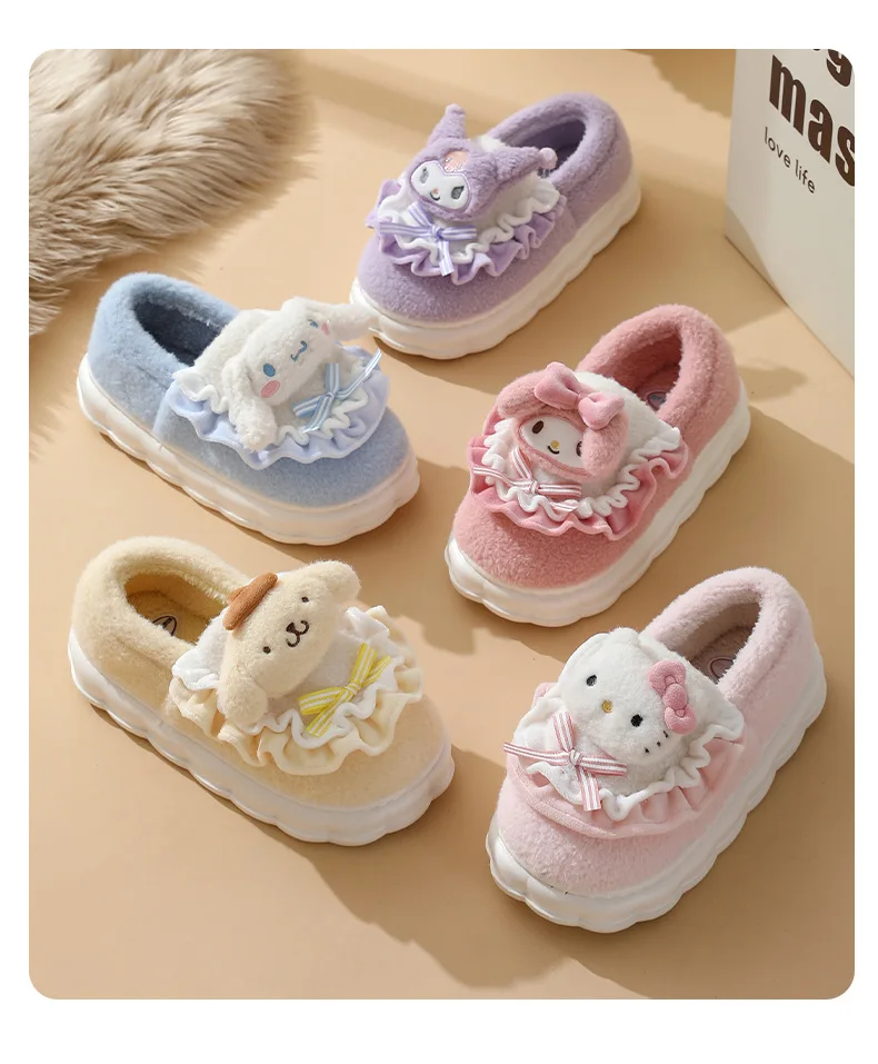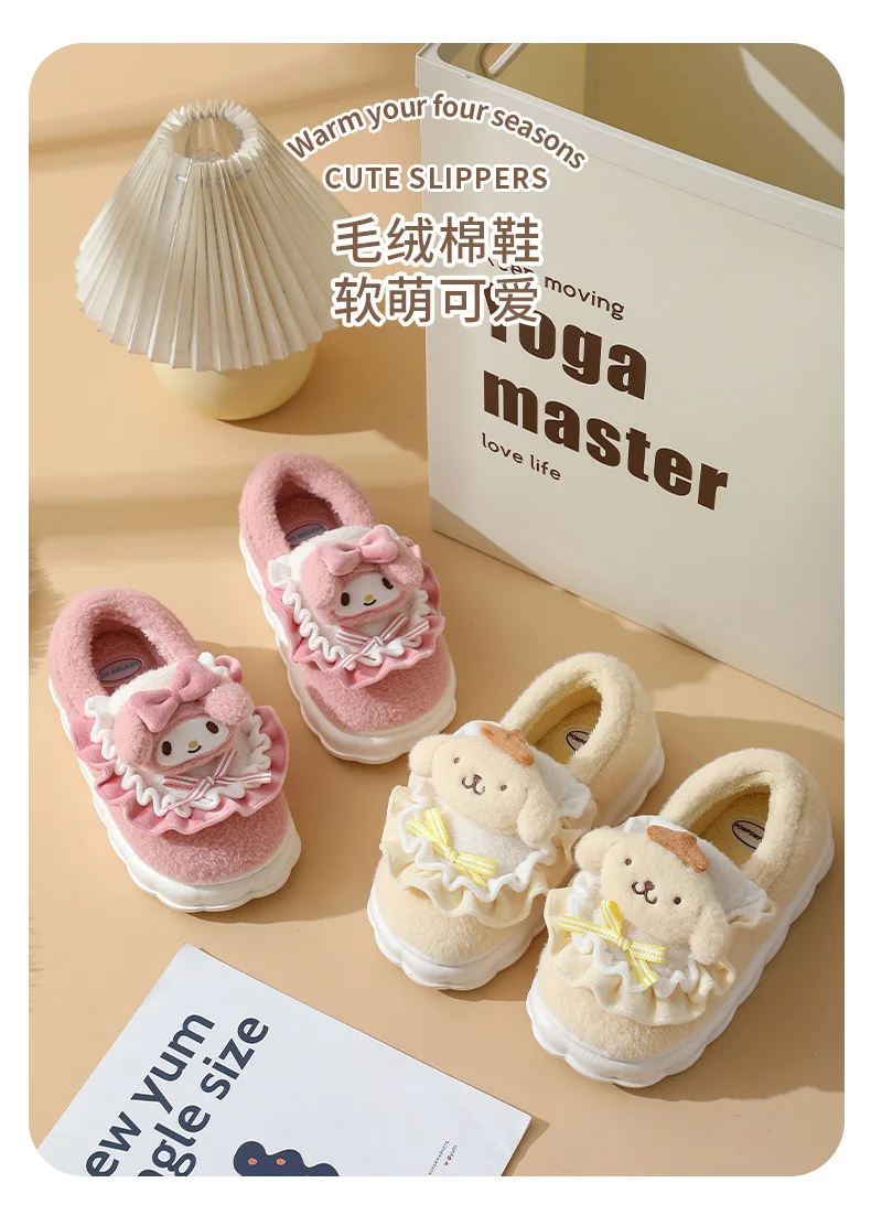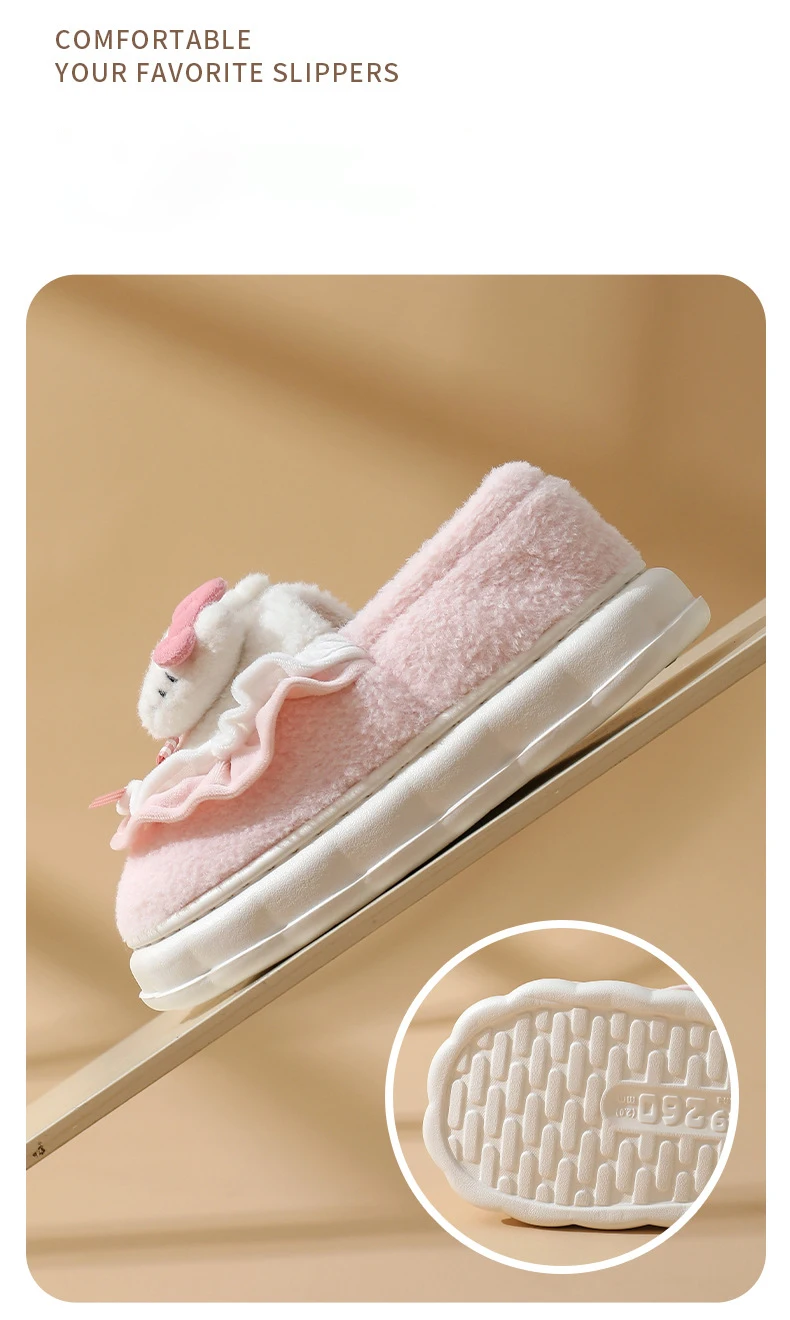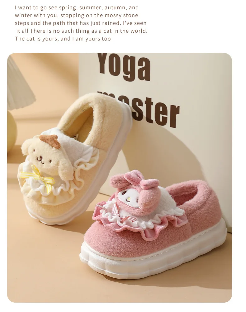 Sweet Cotton Shoes Women Winter Home Thick Sole Cartoon Non-slip Slippers Indoor Comfortable Kuromi Hello Kitty