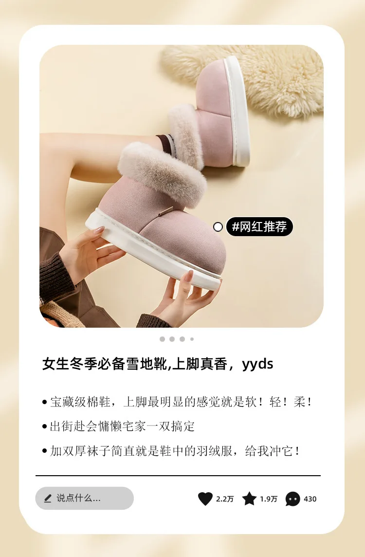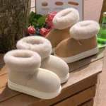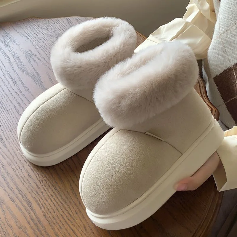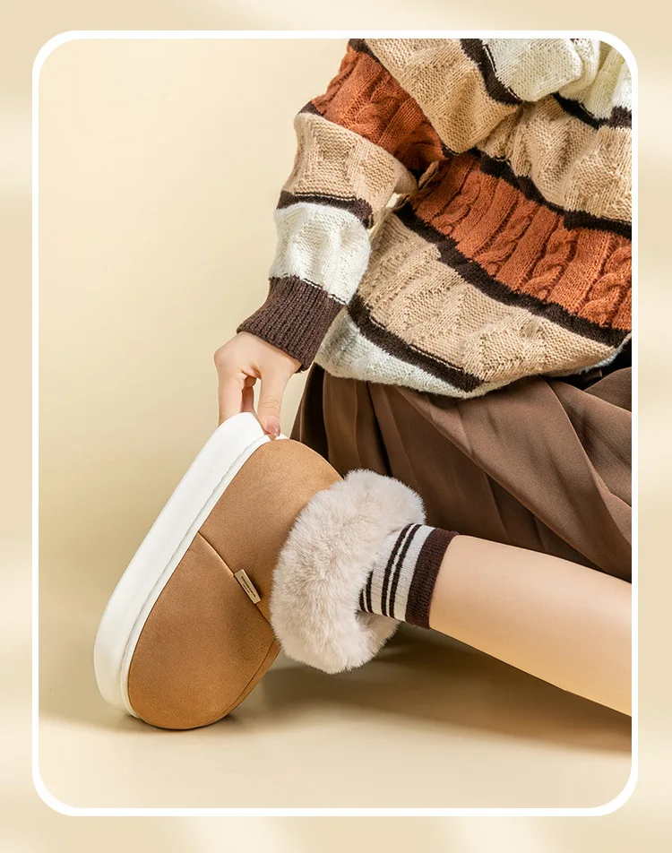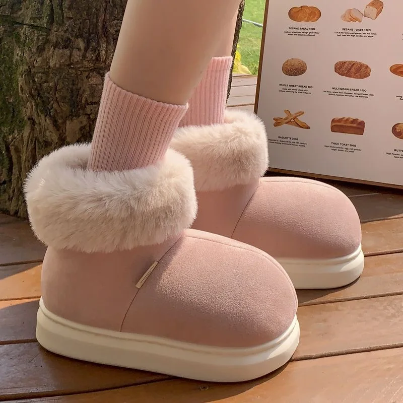 Thick Sole Cotton Slippers for Women Winter Warm Plush Shoes Couples Indoor Home Floor Footwear Female Male Street Snow Boots