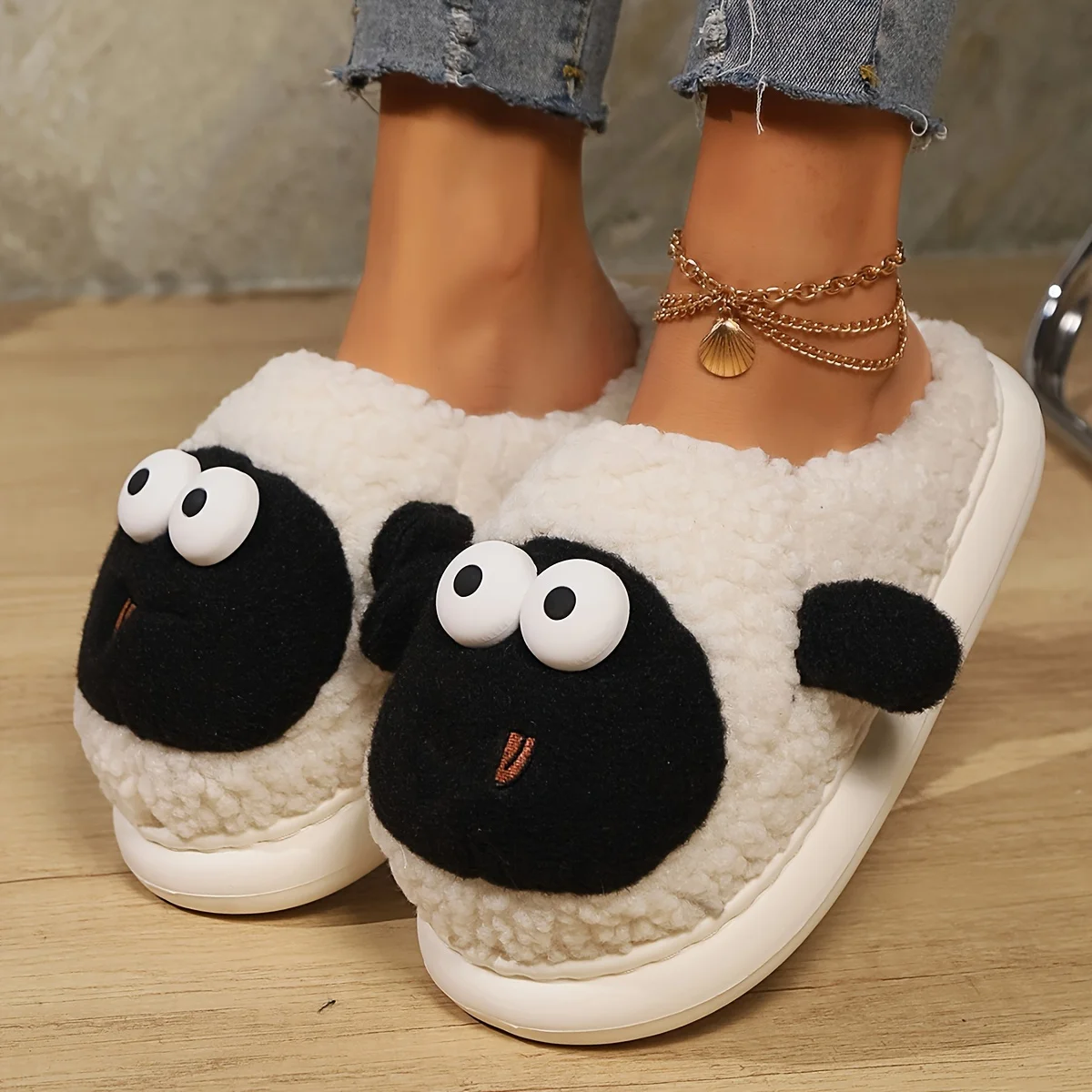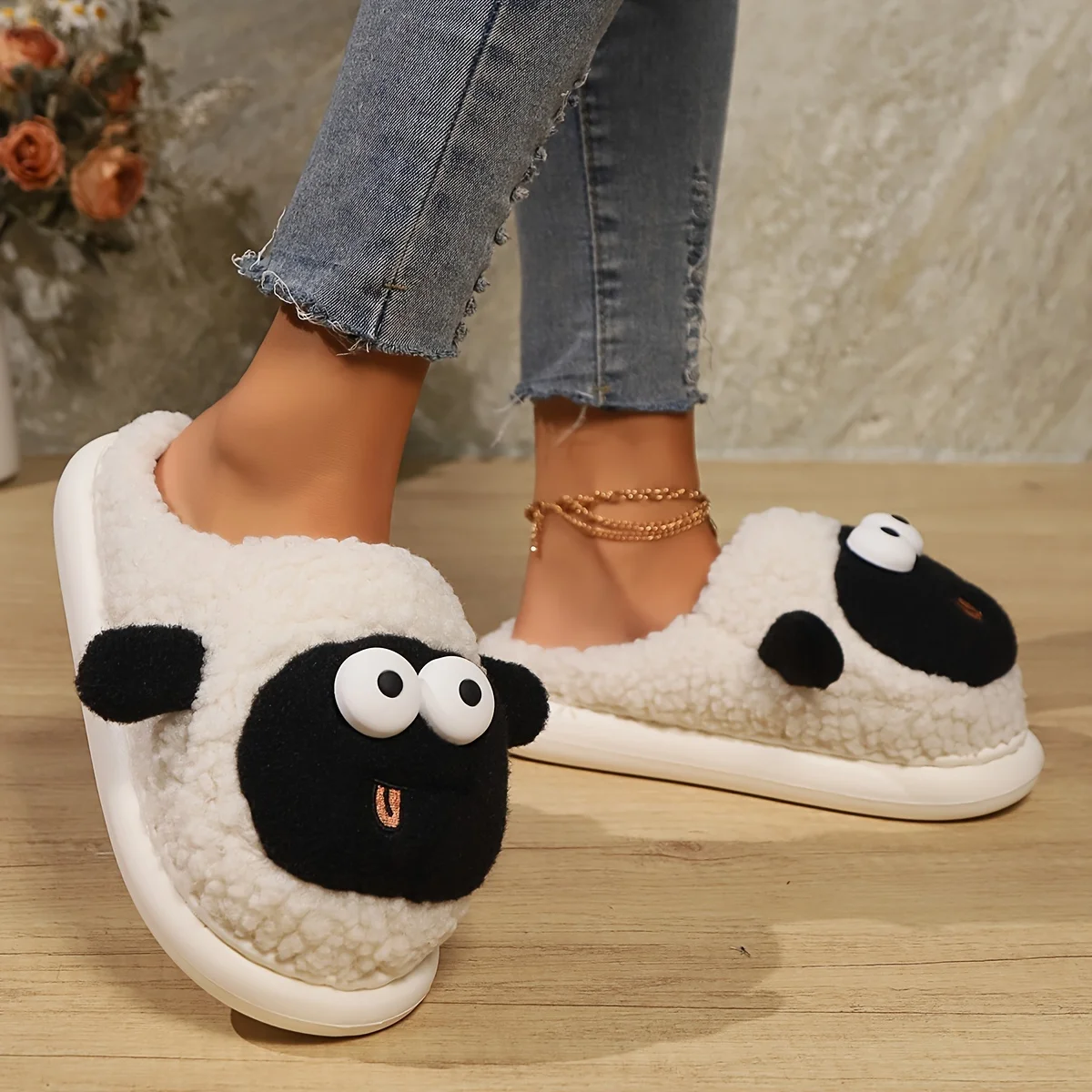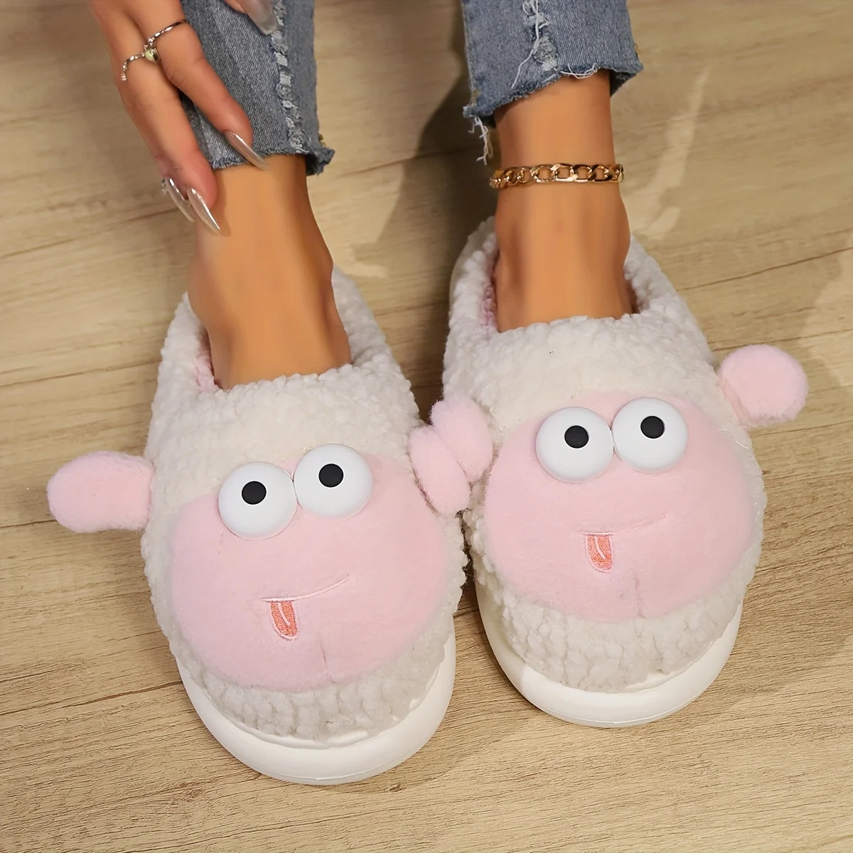 Women's Comfortable and Cute Lambswool Plush Slippers Suitable for Indoor and Outdoor Wear EVA Sole Perfect Choice for Winter