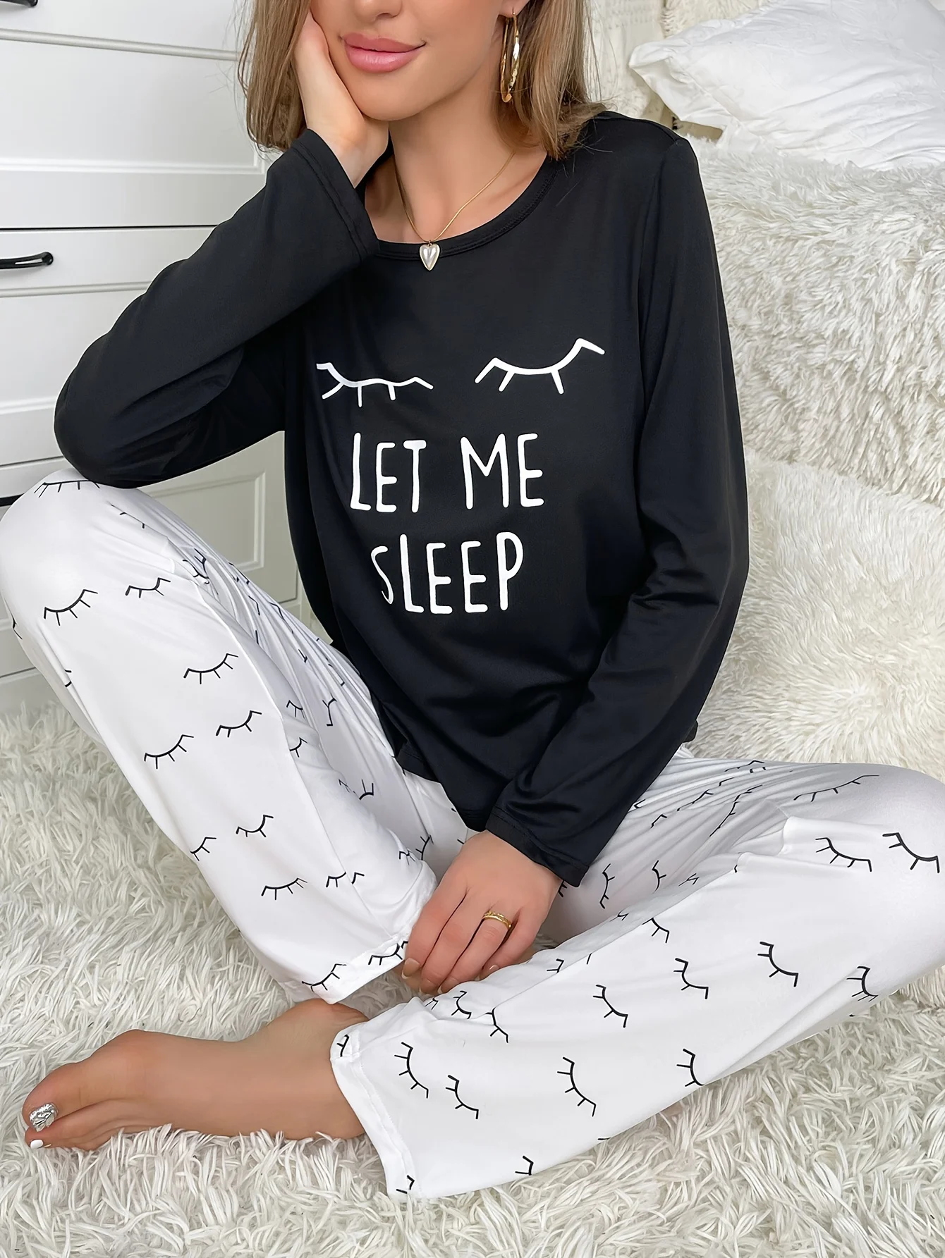 Women’s new style pajamas set letter pattern long sleeve top printed trousers two sets of casual home wear